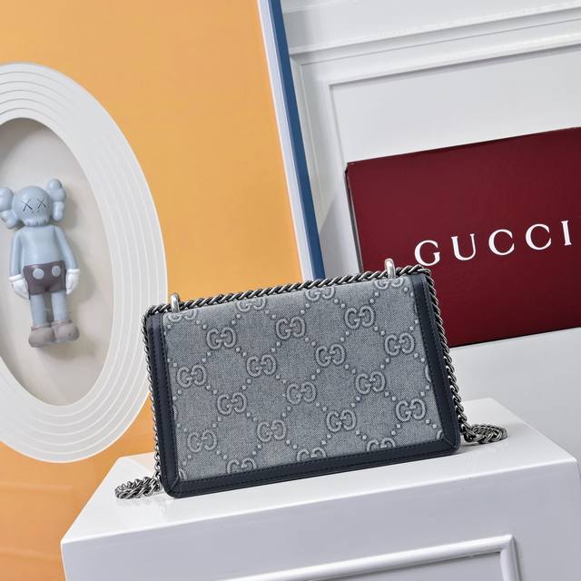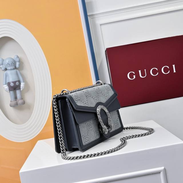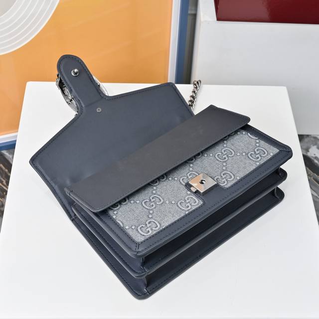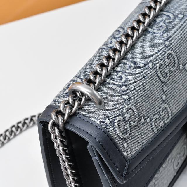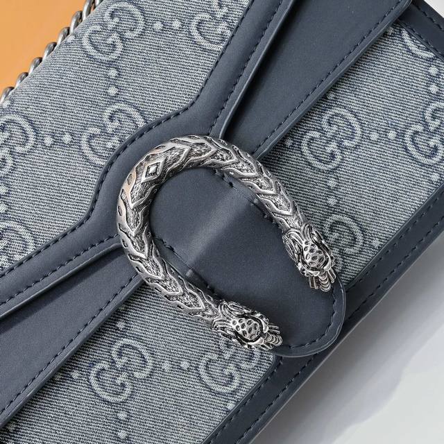 comes with a folding box. Gucci's cool new denim Dionysus. Just arrived this season. Very classic and retro! Made with double G jacquard denim fabric. The denim's texture and color... Very vibrant color! Size: 25 x 15.