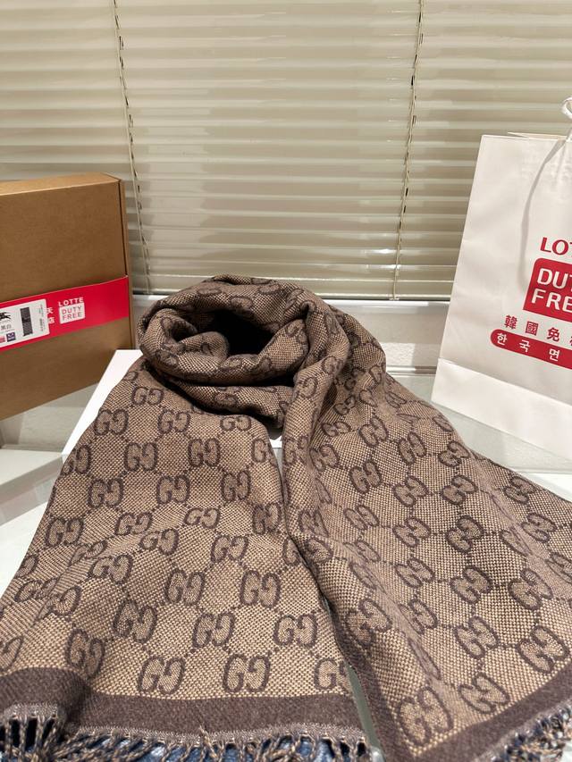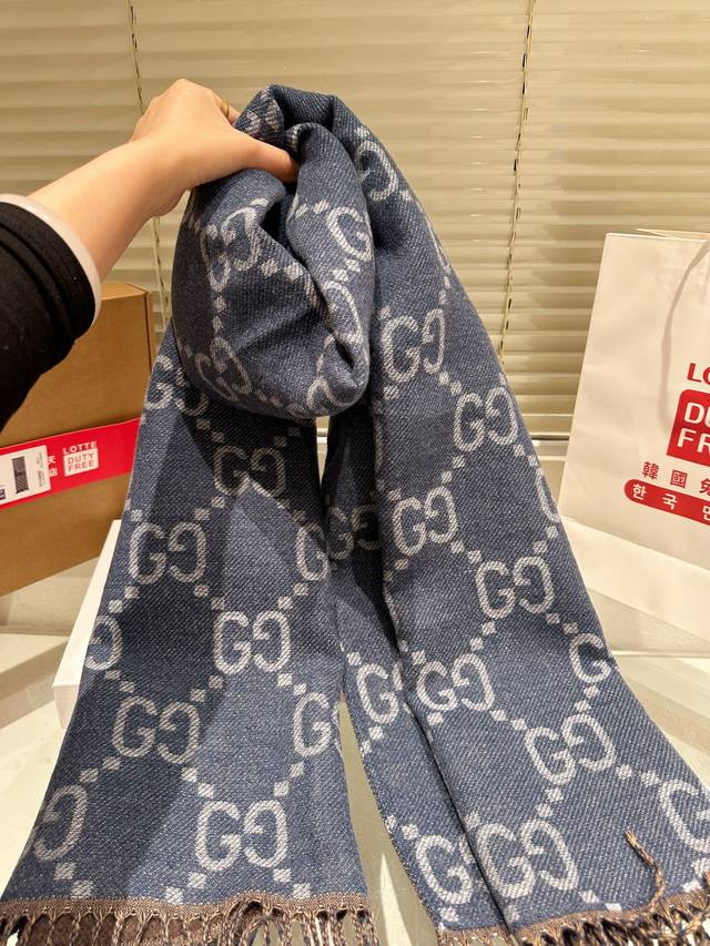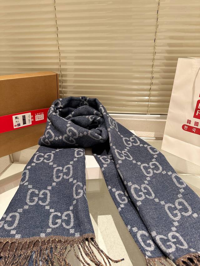 Comes with full Lotte packaging and a shipping box. This classic Gucci scarf is made of high-quality materials! Suitable for spring, autumn, and winter! Looks amazing as a shawl! Brightens skin tone! Has a very powerful aura when worn. Soft to the touch and of high quality. A masterpiece. Specifications: 95% wool + 5% silk.