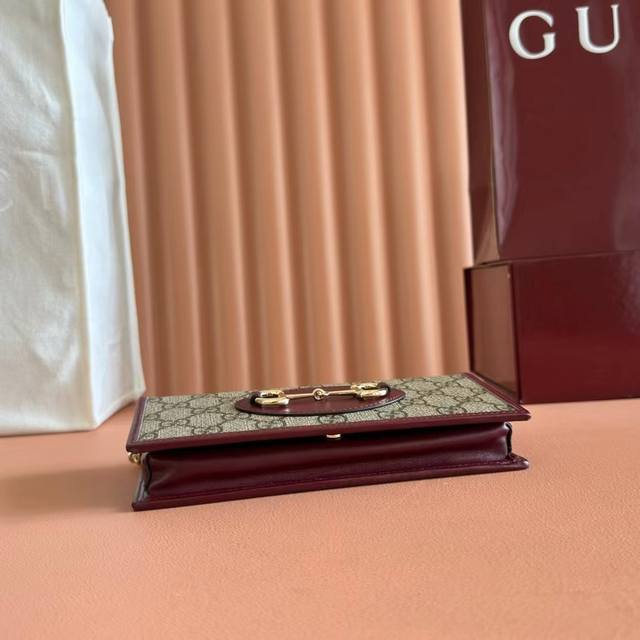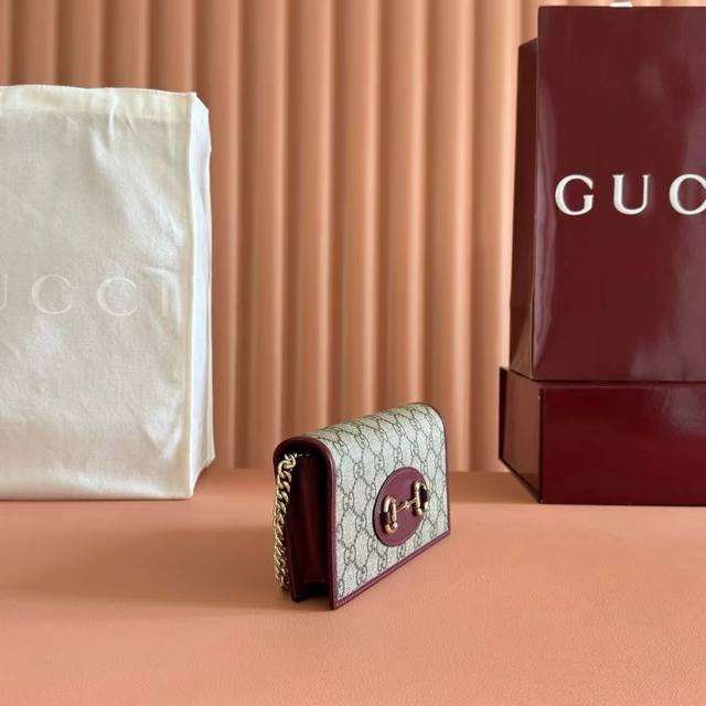 Creative Director Sabato De Sarno presents the new GG monogram coated canvas, a premium material that is soft, lightweight, and durable. This Gucci Horsebit 1955 wallet on chain is expertly crafted in beige and dark brown, with elegant Gucci Ancora leather trim. Beige and dark brown new GG monogram coated canvas