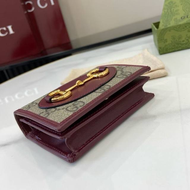For the premium edition, Creative Director Sabato De Sarno presents a new Gg monogram coated fabric, creating a superb material that is soft, lightweight, and durable. This Gucci Horsebit 1955 card holder is expertly crafted in Ancora and Ancora red, with elegant Ancora red leather trim.