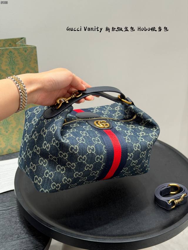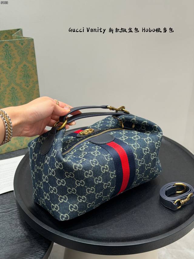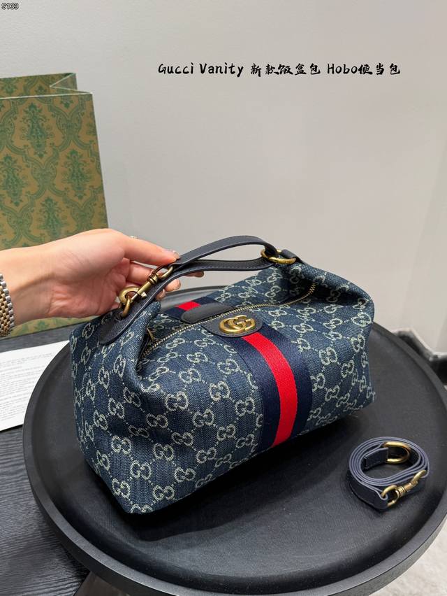 Gift Box Packaging Ddd Gucci Vanity Monogram Lunch Bag, Hobo Bento Bag! Classic Ggsupreme canvas + red and green webbing, full of retro feel Ddd Size 27cm DDD