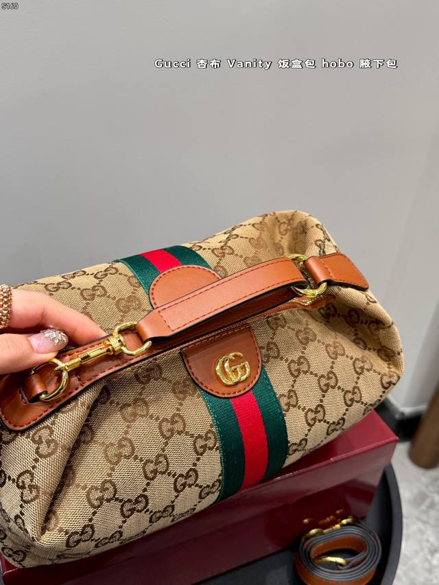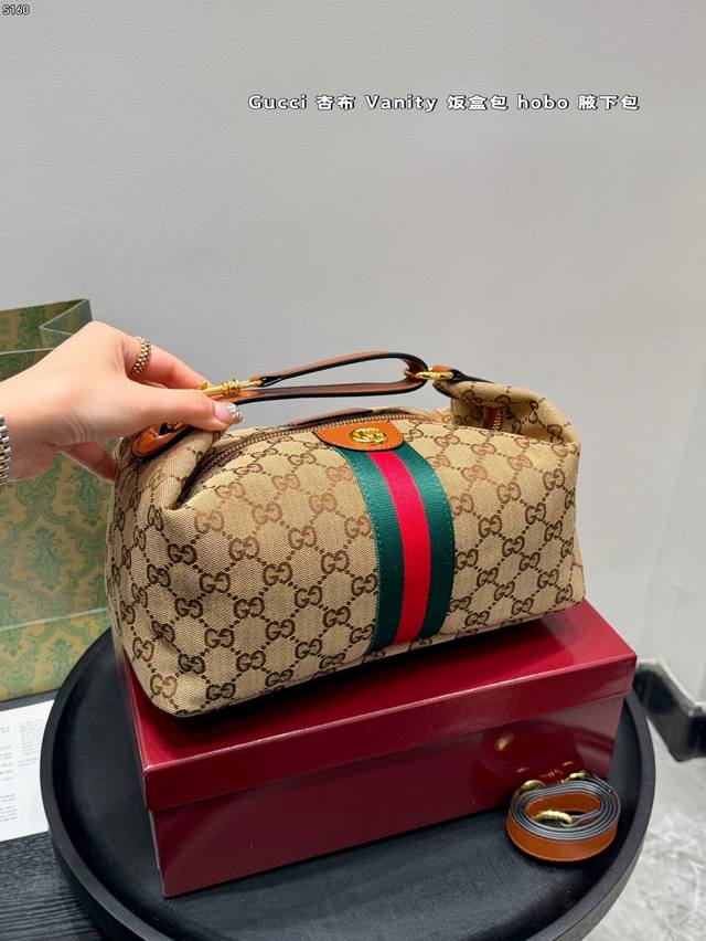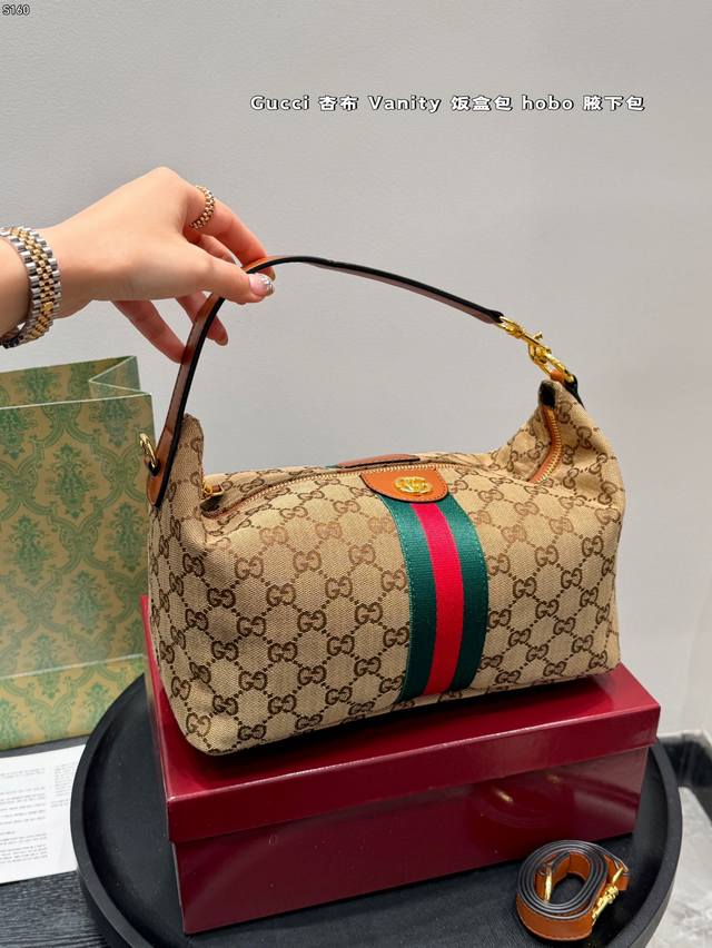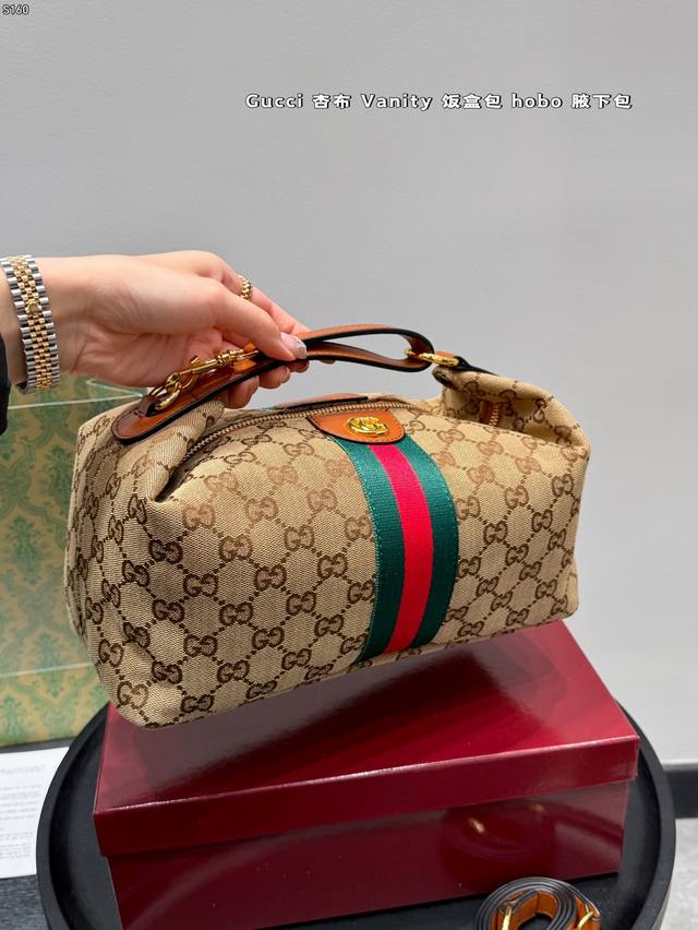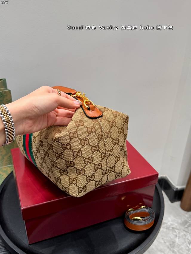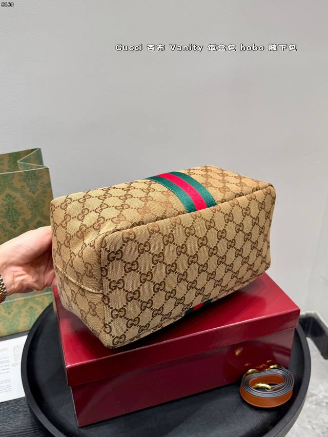 Gift Box Packaging Ddd Size 27*11Cm Ddd Gucci Vanity Lunchbox Bag Ddd Classic beige ebony Gg Supreme canvas + red and green Web webbing, full of retro feel! Inspired by the brand archives, the unique "lunchbox bag" shape, brown leather piping + adjustable shoulder strap, can be carried by hand, over the shoulder, or crossbody. It easily holds your essentials for daily commutes and casual outings, practical and stylish, a perfect finishing touch for autumn and winter outfits! DDD