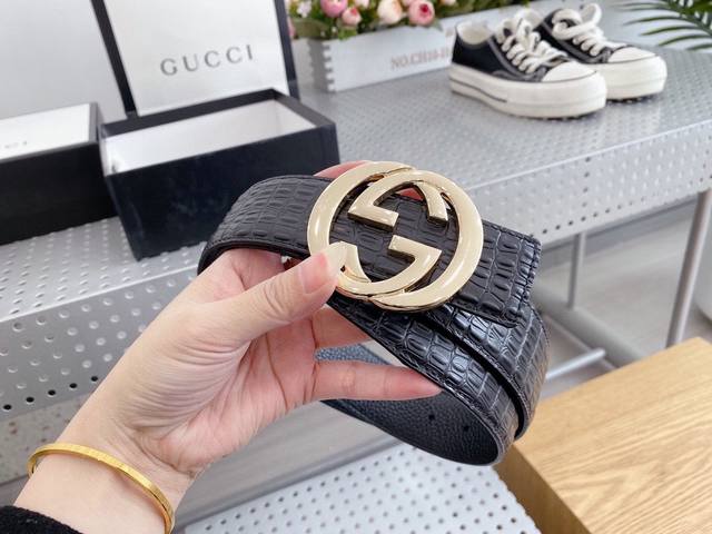 Gucci 3.8 Width Big Hit Gucc Full Set Of Packaging Gift Box Belt, Whether It Is High-End Packaging Or The Quality Of Genuine Materials, It Is An Unrivaled Product, Perfect Gift Box Packaging: The Packaging Is High-End And Very Upscale, New Overseas Orders, Pure Cowhide, Very Strong And Durable, Thick Texture, Soft And Delicate Feel, Leather Luster Highlights The Super High Texture! ! Customer-Supplied Hardware Buckle: Precision Production, High-Tech Electroplating Technology, Fine Polishing, Not Only The Texture Quality Is Excellent, Its Sensory Effect Is Also First-Class! ! The Hardware And Pearl Inlay On The Belt Body Highlight The Luxury Of The Brand, The Style Is Simple And Versatile, Suitable For A Wide Range Of People, And Can Adapt To Any Waist Size.