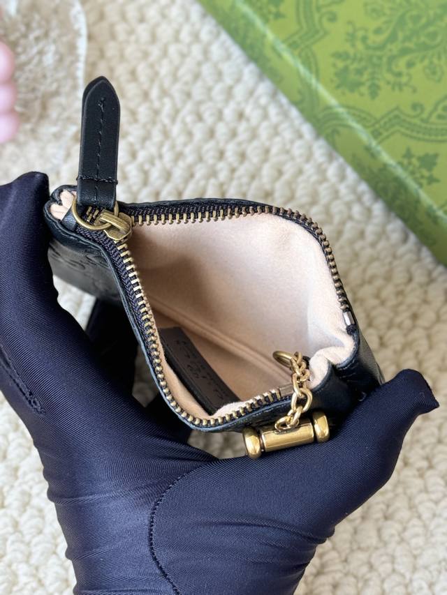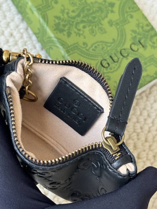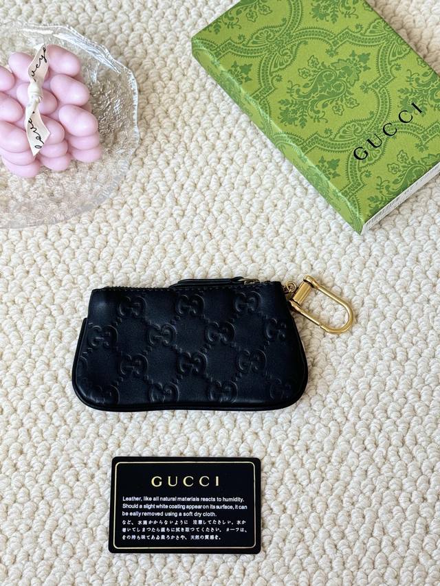 Gucci Brand New Small Coin Purse - Lipstick Bag! Made of calfskin with large lettering and exquisite original factory hardware! Features a flexible and unique hook closure; small and exquisite, yet highly functional. Model: 671722, Dimensions: 12 x 7.5 x 1.5 cm. (DDD)