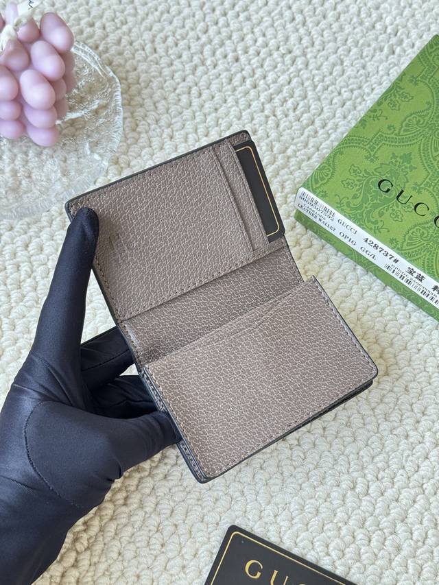 Gucci folding card holder with striking signature double-G metal hardware. Made of canvas with webbing for a textured look. Model: 428737 Dimensions: 10.5 x 7.5 x 2.5 cm
