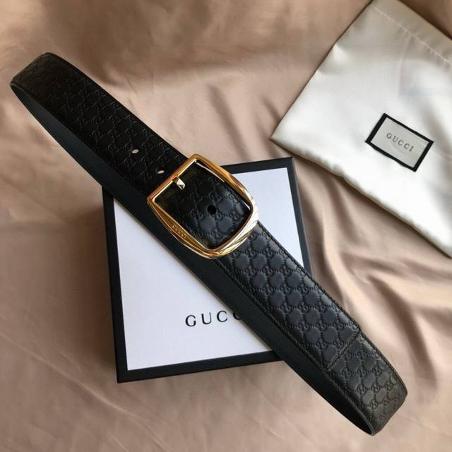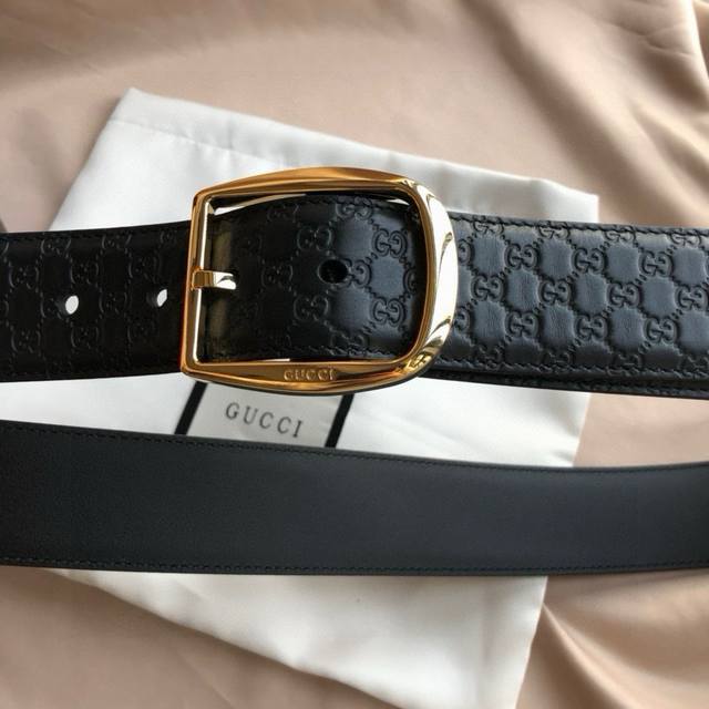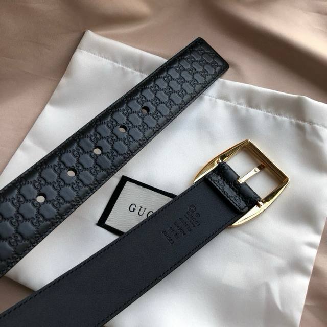 Gucci Gg Calf Leather Print With A Lychee-Textured Buckle Belt, Perfect For Spring And Summer, 4 Cm.
