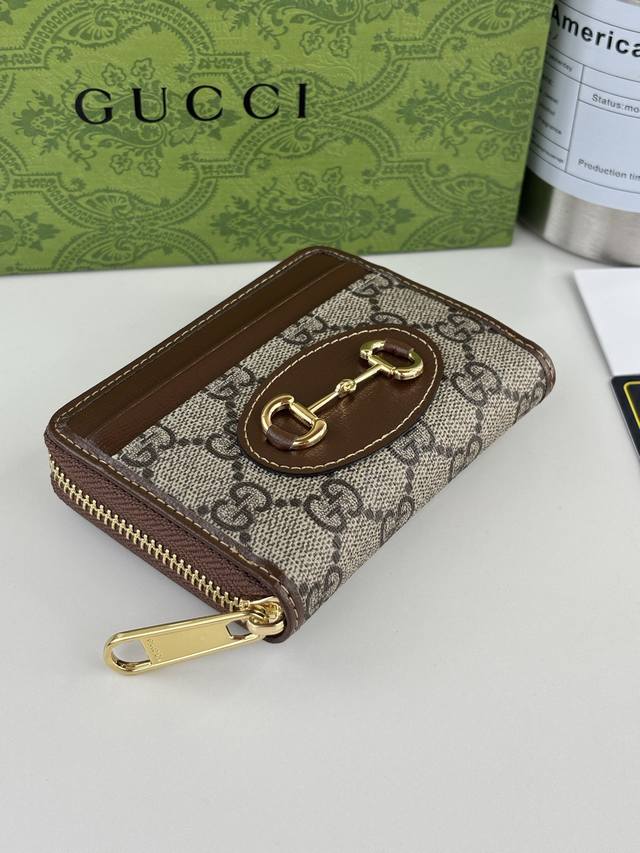 Gucci introduces its new 1955 Horsebit cardholder, crafted from Gg Supreme canvas and brown leather. This design features the signature double-ring and elongated shape, a detail inspired by the brand's equestrian heritage and one of Gucci's most iconic symbols. Style Number: 658549 Dimensions: 11.5cm x 8.5cm x 3cm Color: Brown