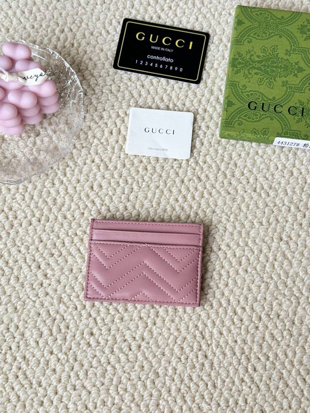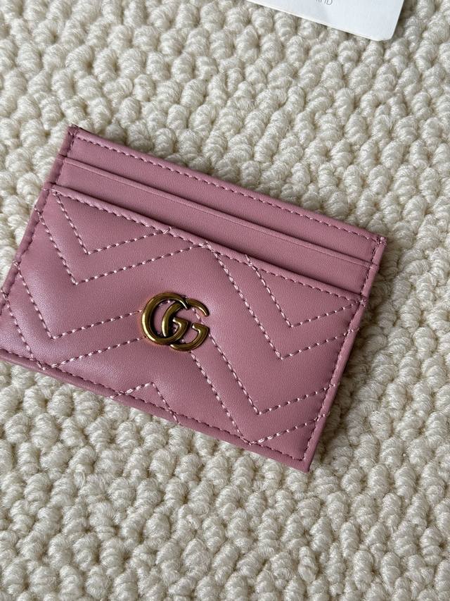 Gucci Leather Mini Card Holder - Real Product Photos! Double G wave pattern, vintage gold-tone metal hardware, Ddd style number 443127, human figure pattern, size: 10X7Cm DDD