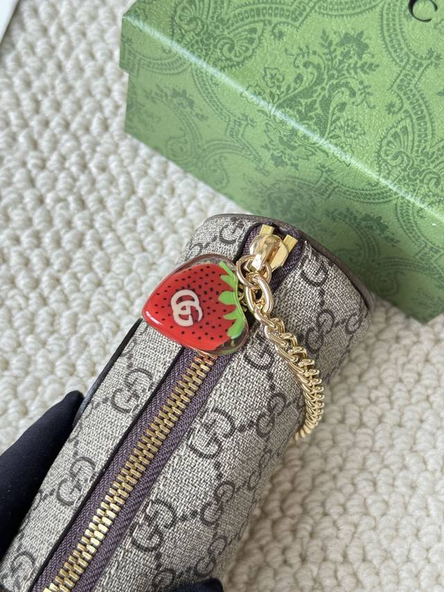 Gucci New Women's Beige Ebony Canvas Strawberry Zipper Coin Purse DDD