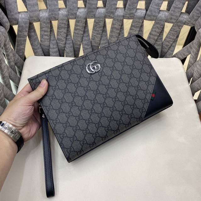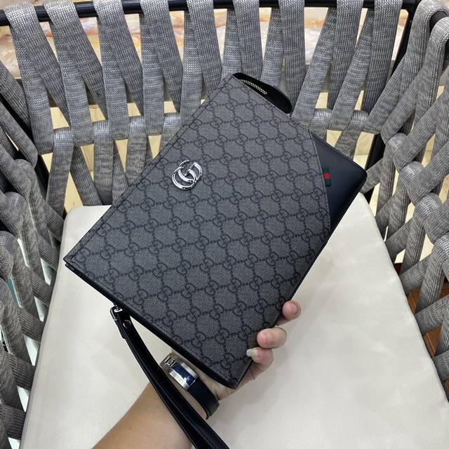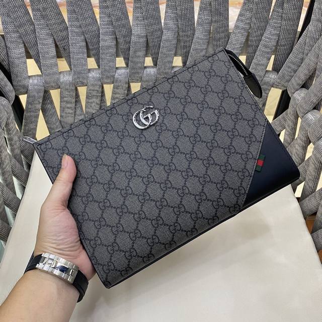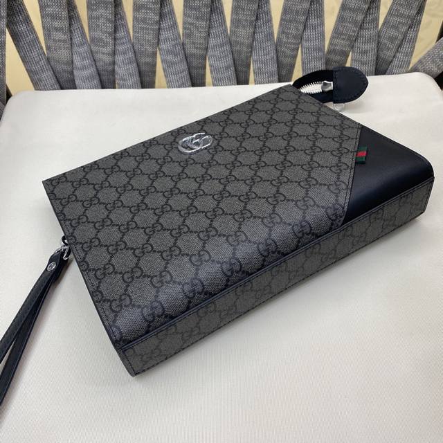Gucci's latest clutch features a large capacity. This new Gucci bag is authentic quality and impeccably crafted. Another hot new arrival! Breaking away from classic design, this eye-catching Gucci lining is crafted with exclusive Gucci fabric. Style: 1015-5g Size: 27-20-6
