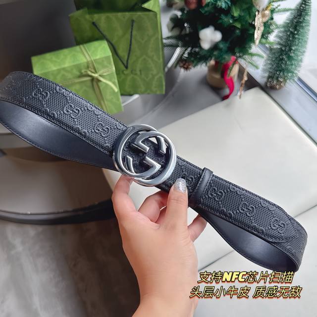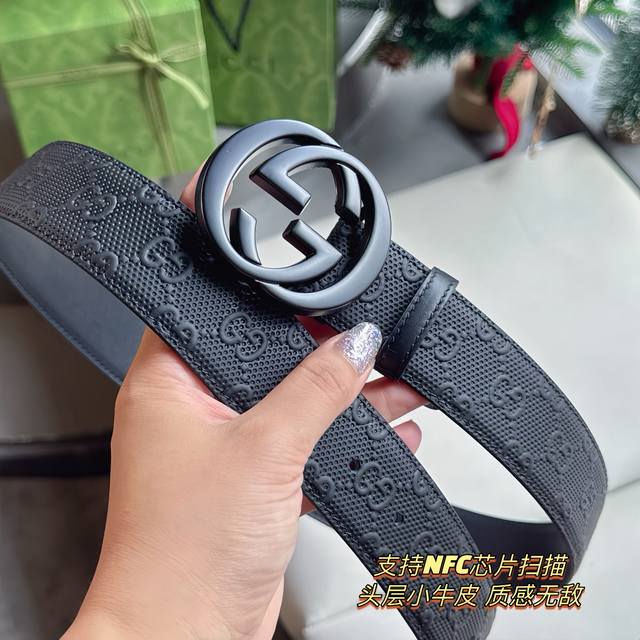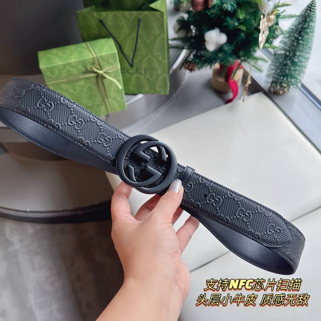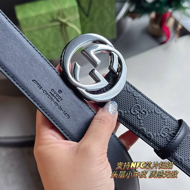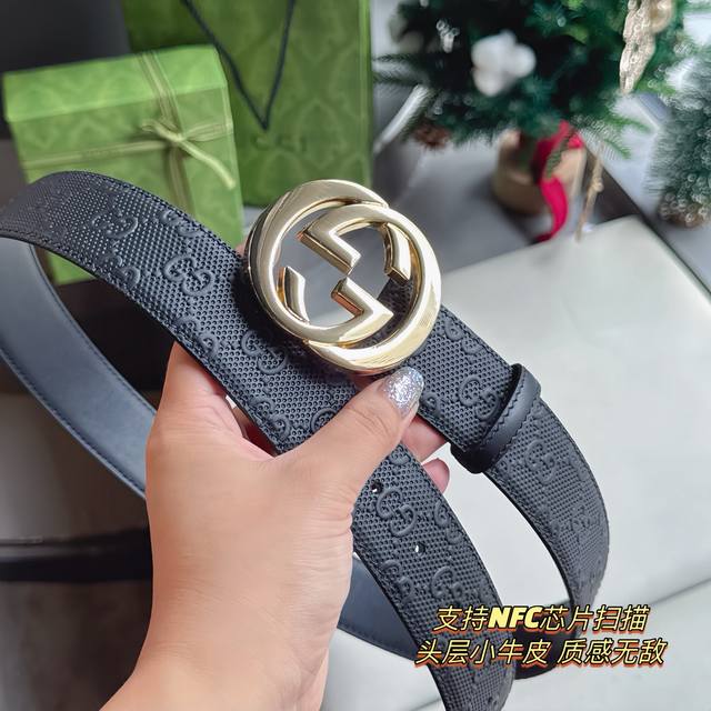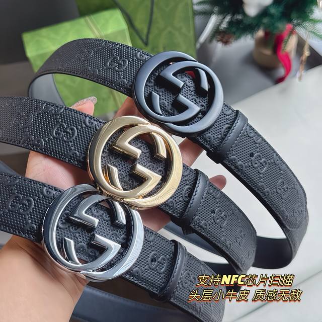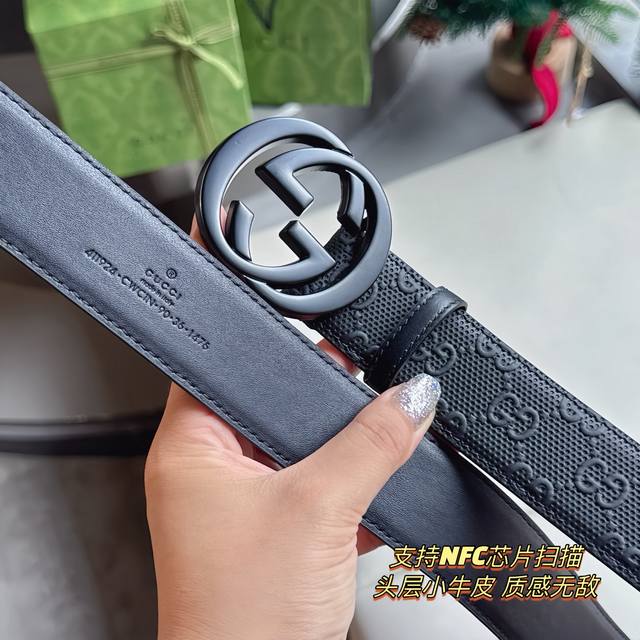 Gucci's latest top-grain cowhide classic pattern is a hot commodity online. It's super stylish and will make you the center of attention wherever you go. Its unique design makes it more comfortable and stylish. It's of excellent quality and is a must-have for high-end customers. 3.8cm wide. NFC chip scanning is supported.