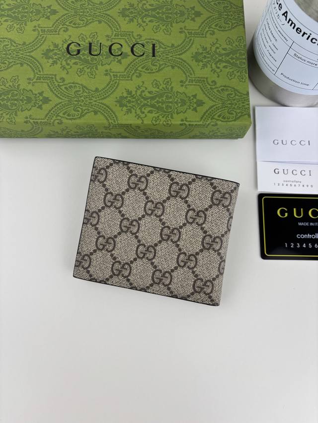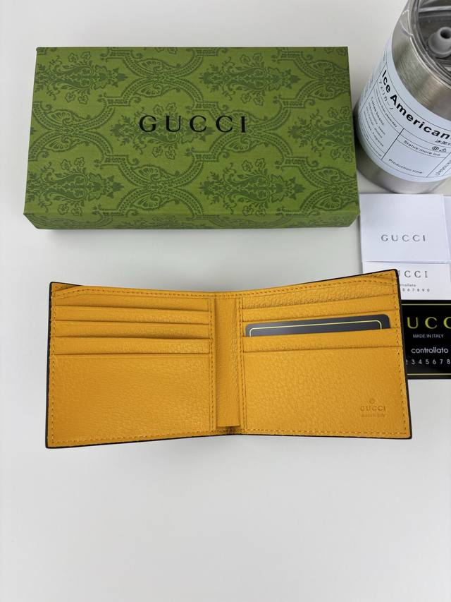 Guccl Apricot Gg Supreme PVC short wallet, oval leather label with tiger head pattern! The inner compartment is decorated with yellow pig-grain cowhide, perfect color combination and exquisite workmanship!