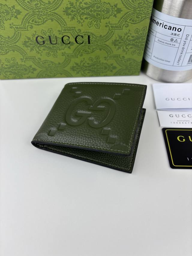 Guccl Gg embossed print transforms small everyday items into stylish, everyday accessories. Innovative textures and finishes continue to shine in Gucci's latest collections, showcasing vibrant energy and individuality. This wallet is expertly crafted from green leather and features an oversized Double G logo throughout. Green Super Double G leather,
