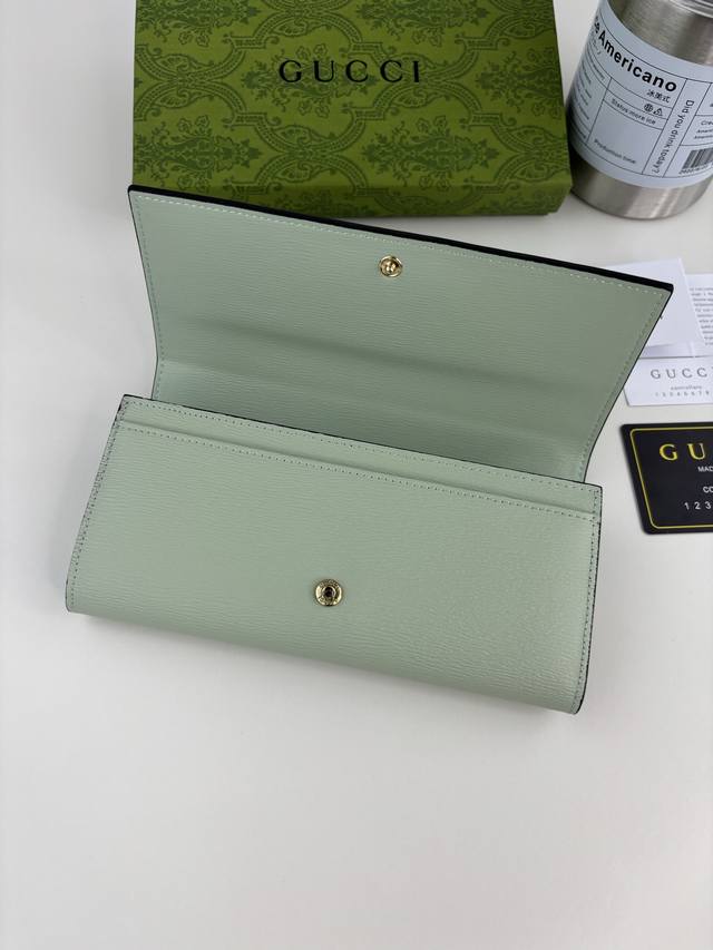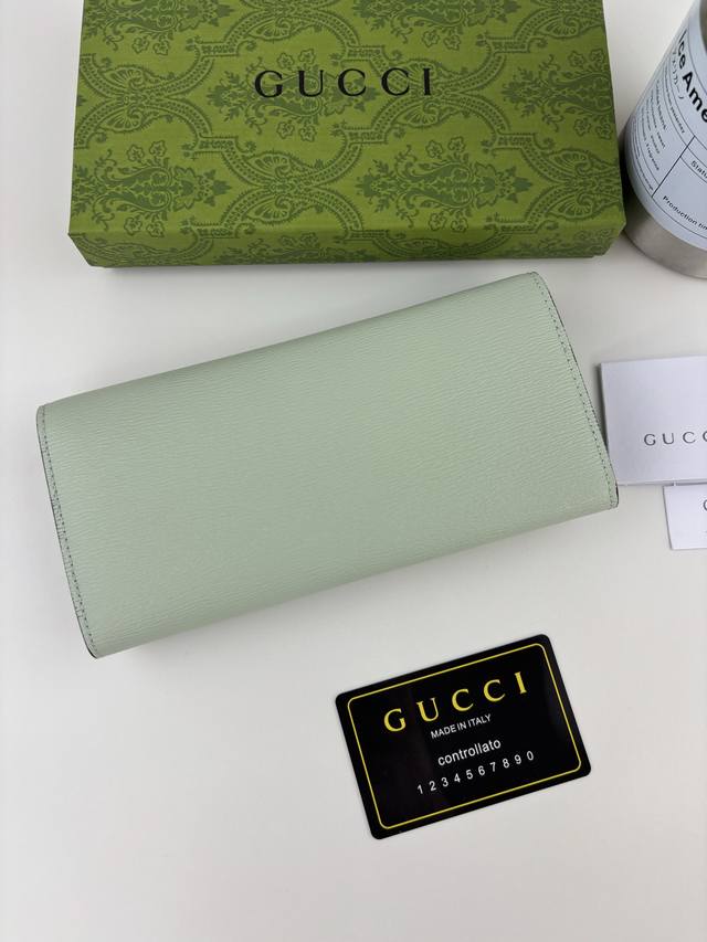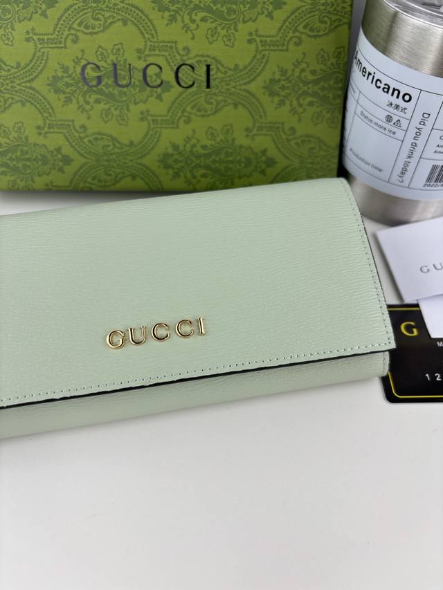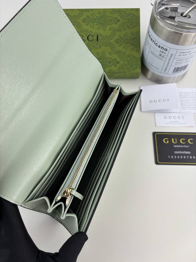 Guccl Long wallet with handwritten Gucci logo. Exploring self-expression with limitless possibilities has become the essence of the brand's design. This long wallet is expertly crafted from green leather and embellished with gold-tone hardware featuring the handwritten Gucci logo, adding a touch of signature charm. Green leather, gold-tone hardware, taffeta lining, and handwritten Gucci logo details.