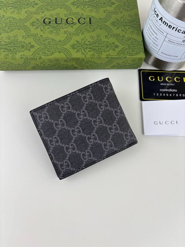 Guccl new men's short wallet! Counter synchronization, black leather, with PVC fabric silk screen latest bee logo oil edge fine workmanship, simple and generous, fashionable and domineering,