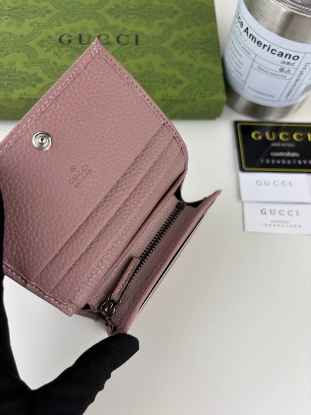 Guccl new summer model, small double G metal decoration, deepen the hidden logo sensual G Gg Marmon card box, with a unique transformation of the original color combination, re-launching the iconic house design, the exterior is pink leather, the interior is made of pink leather fashion items! Bag has a snap button closure