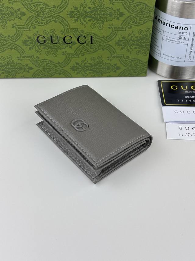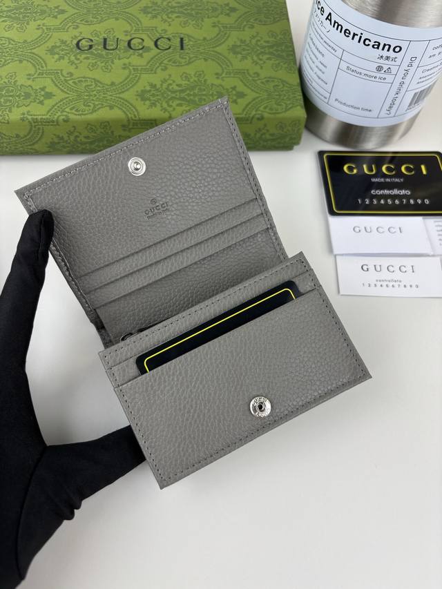 Guccl new summer model, small double G metal decoration, deepen the hidden logo sensual G Gg mamon card box, with a unique transformation of the original color combination, re-launching the iconic house design, the exterior is gray leather, the interior is made of gray leather fashion items! Bag has a snap button closure
