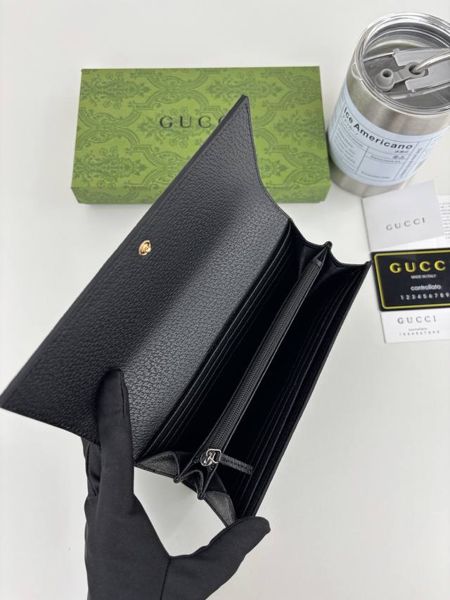 Guccl official website synchronized new arrival! Ophidia series ~ bi-fold long wallet, made of Gg Supreme pigskin leather with the iconic double G hardware mark, classic red and green webbing, exquisitely crafted! DDD Style number: 523153 DDD Size: 19Cm X 10Cm X 3Cm DDD Color: Black DDD