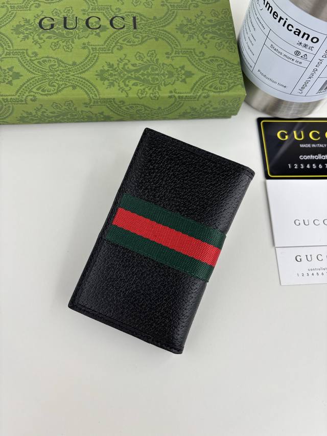 Guccl official website synchronized new arrival! Ophidia series cardholder, made of Gg Supreme original factory pigskin top layer cowhide, with the iconic double G hardware mark, classic red and green webbing, exquisitely crafted. DDD Style number: 834691 DDD Dimensions: 12Cm X 7.5Cm X 1.5Cm DDD Color: Black DDD