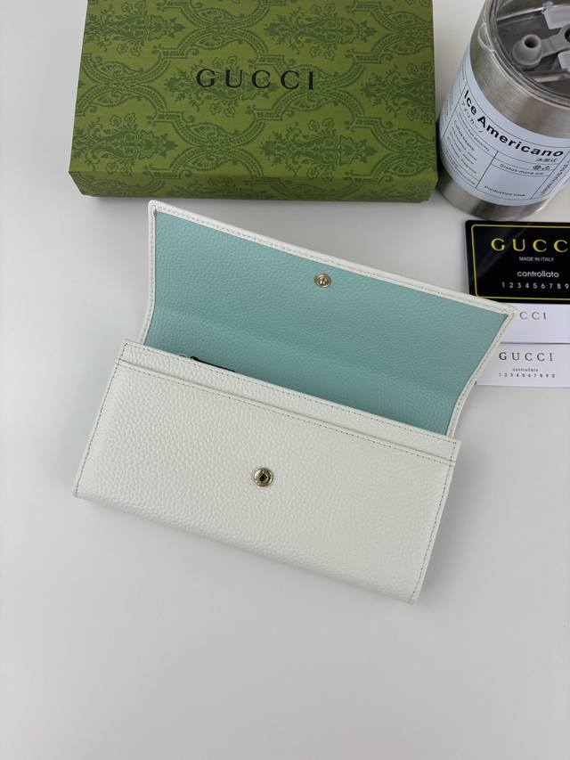 Guccl summer new style, small double G metal decoration, deepen the hidden logo sensual G, with the original color combination and unique deformation, re-launch the iconic house design, the exterior is white leather, the interior is a fashionable product made of blue leather two-tone! The bag has a snap closure