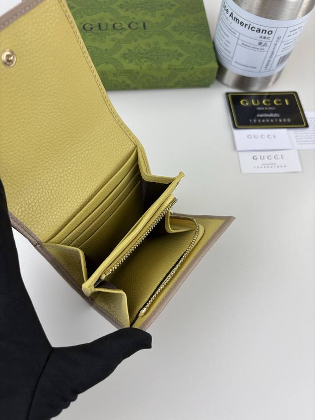 Guccl summer new style, small double G metal decoration, deepen the hidden logo sensual G, with the original color combination and unique deformation, re-launch the iconic house design, the exterior is pink leather, the interior is a fashionable product made of yellow leather two-tone! The bag has a snap button closure