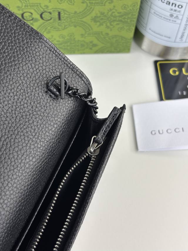 Guccl summer new style, small double G metal decoration, deepen the hidden logo sensual G, with the original color combination and unique deformation, re-launch the iconic house design, the exterior is black leather, the interior is made of black leather fashion items! Bag has snap closure