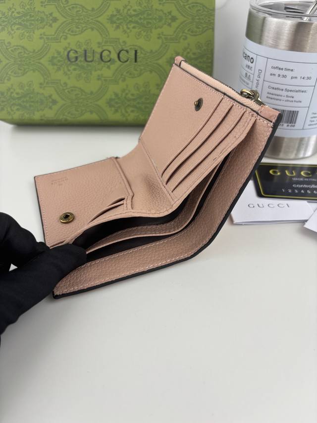 Guccl summer series, the new wallet is made of pink leather, the front bow is made of original python leather piping and gold-tone interlocking double G details.