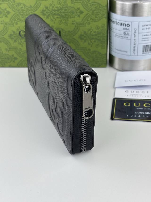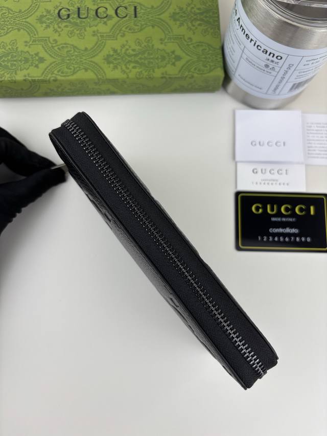 Guccl Super Double G zip-around wallet. The embossed GG print transforms a small everyday item into a stylish, everyday accessory. Novel textures and finishes continue to shine in Gucci's latest collections, showcasing vibrant energy and individual charm. This zip-around wallet is expertly crafted from leather and features an oversized Double G logo throughout. Crafted from Super Double G leather with a moir