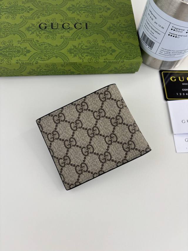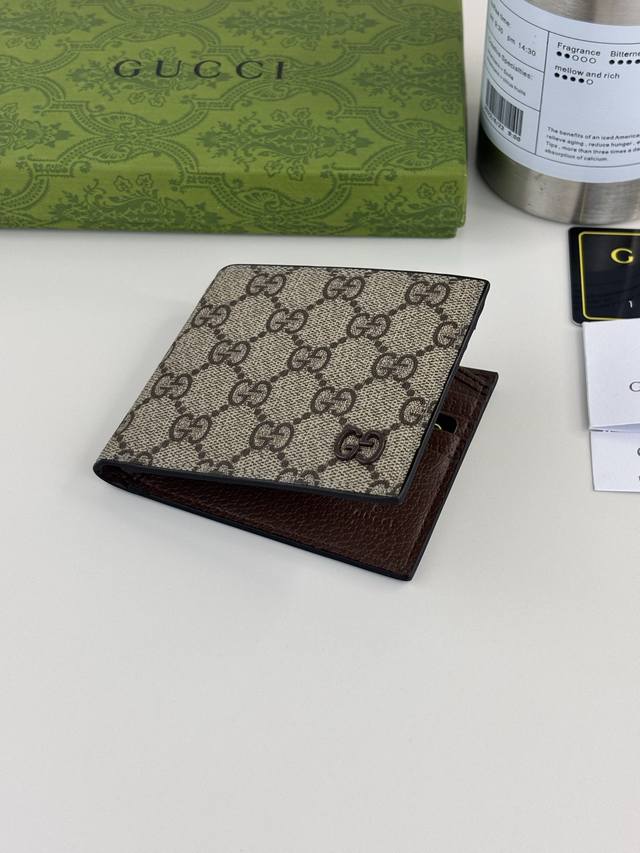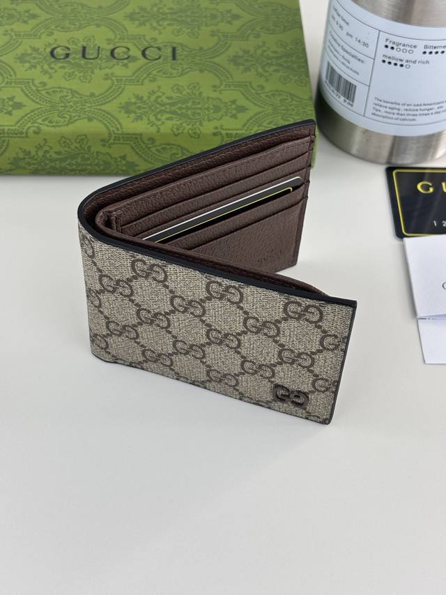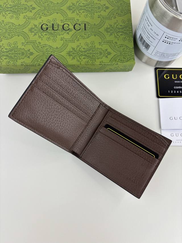 Guccl wallets, a new series of slim and compact small leather goods, are refreshed with a variety of vibrant colors. The contrasting two-tone design makes the Gg logo on the bag stand out. This wallet is crafted from brown Gg Supreme canvas and has a brown leather interior. It has eight card slots and two bill compartments.