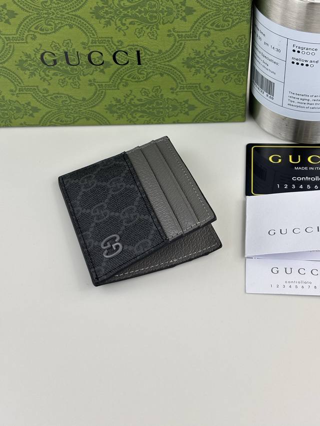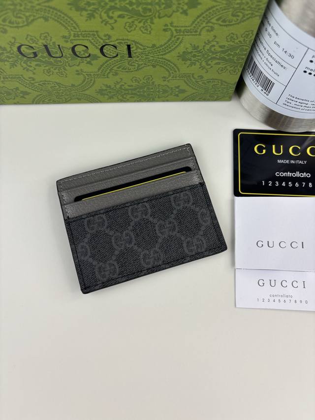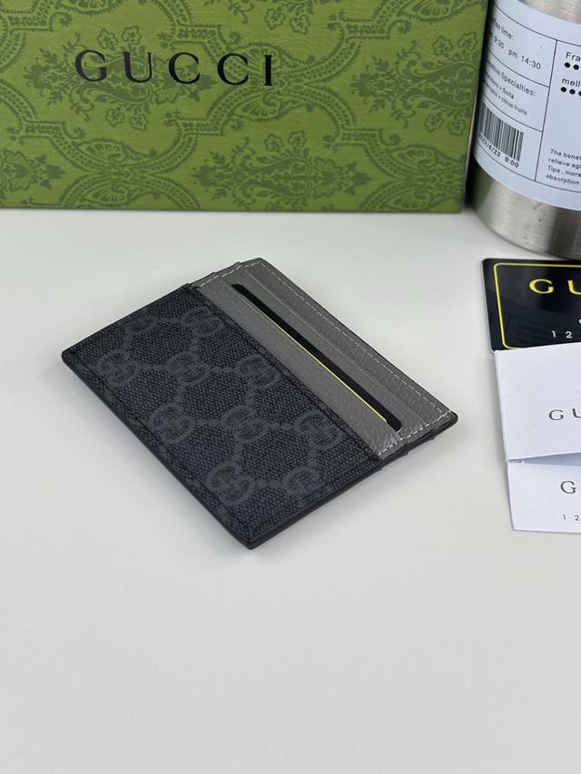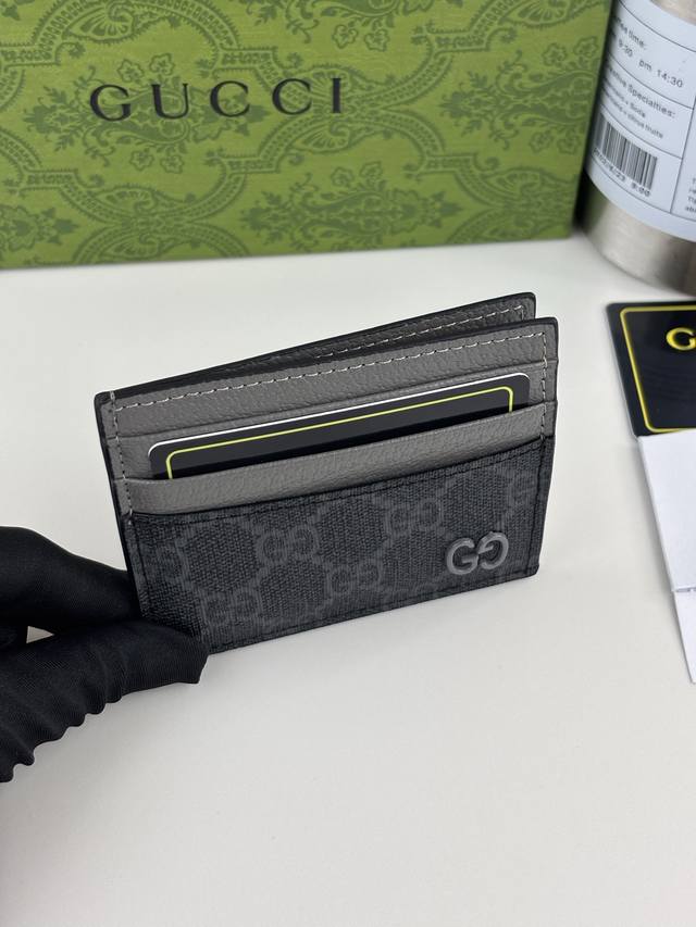 Guccl's latest collection features a cardholder with a contrasting two-tone design that highlights the Gg logo on the bag. The fabric is black Gg, and the lining is a contrasting black Gg Supreme canvas with a gray ceramic-effect double G.