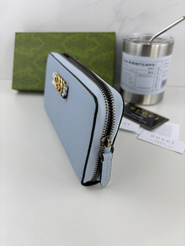 Guccl's latest wallet featuring an interlocking G python bow. Crafted from genuine factory calfskin, the front bow features python piping and antique gold-toned interlocking G details. This iconic fashion item is available in two styles: Style No. 750458 and Dimensions: 19cm x 10cm x 3.5cm. Color: Blue.