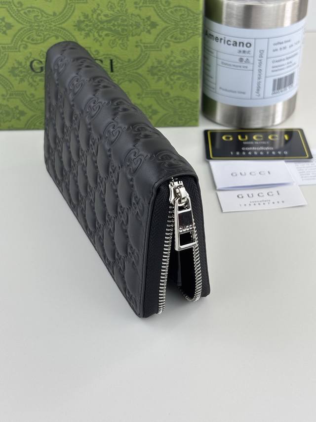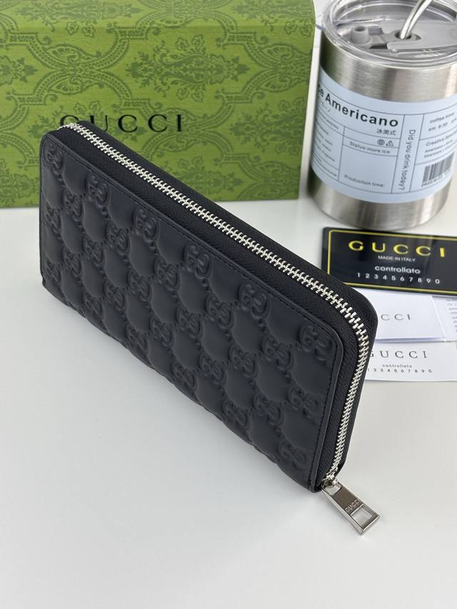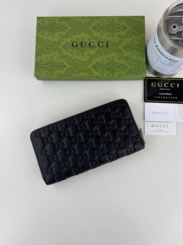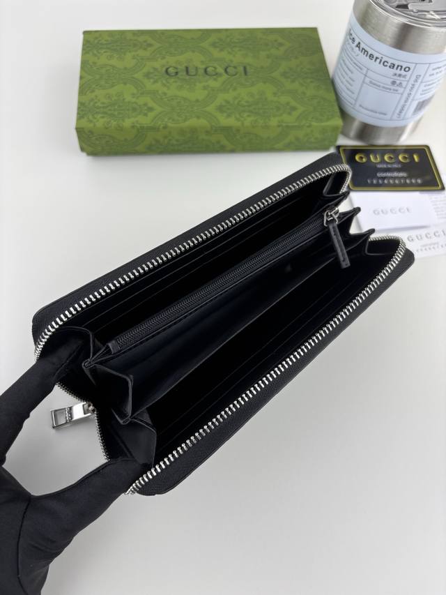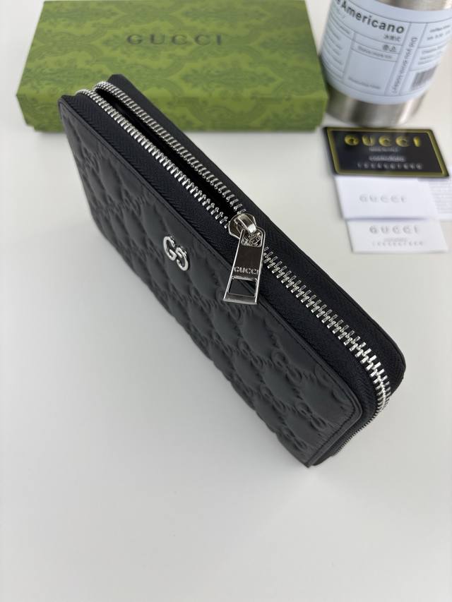 Guccl's new men's zipper wallet, featuring real photos! Made of genuine cowhide leather with a sophisticated heat-embossed print for a sturdy feel, it features the latest double Gg metal logo and imported cotton YKK zippers for a stylish and understated luxury.