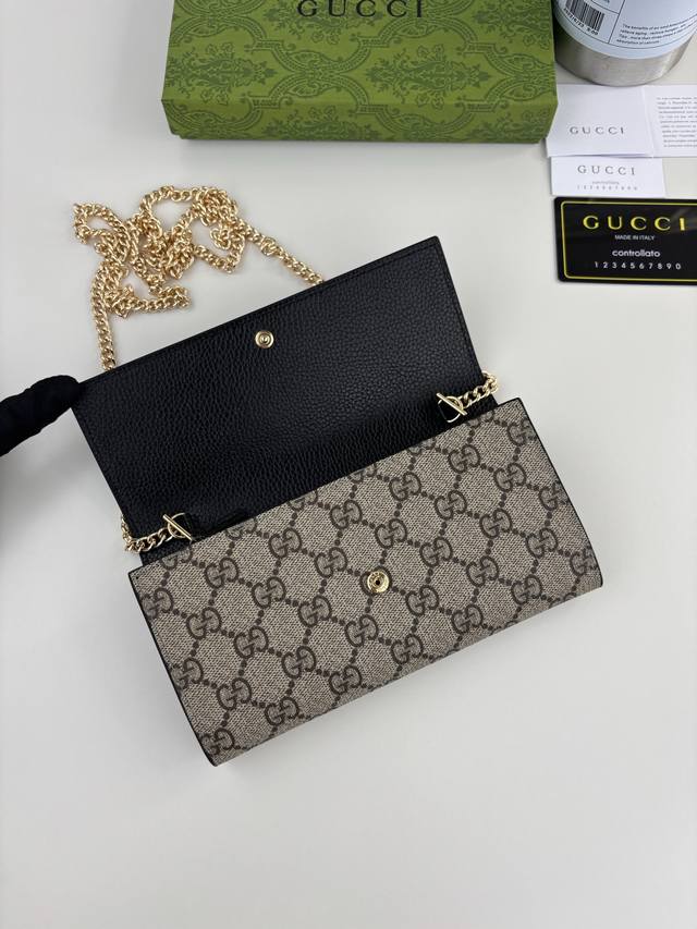 Guccl's new Ophidia collection features classic Double G hardware, with new styling and contoured details. The structured shape features compartments on the inside. The detachable chain strap allows it to be used as a mini bag. Crafted with premium hardware from overseas,