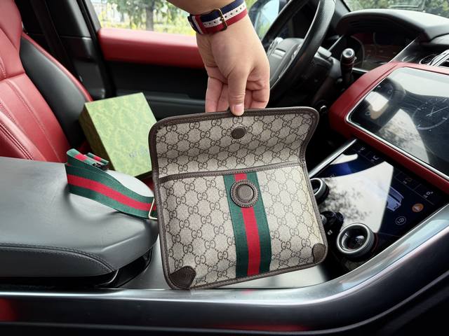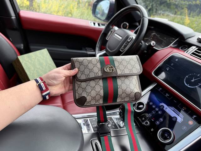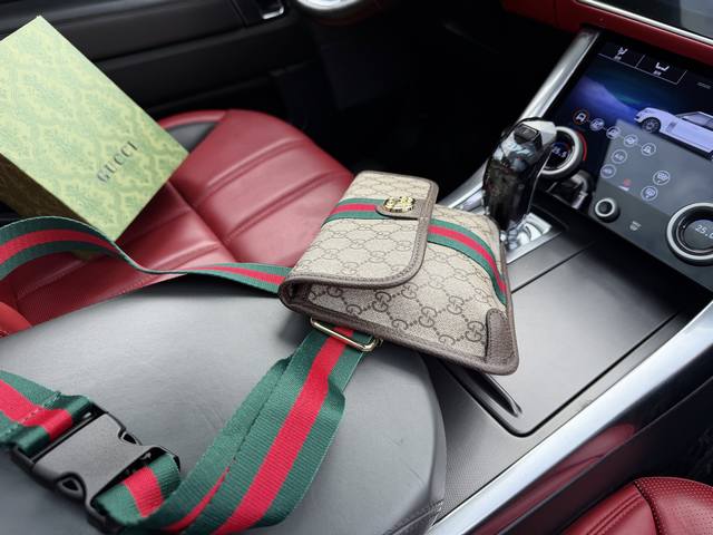 High-end new "Gucci" waist bag, Gucci shoulder bag, tiger head crossbody bag, Gucci Ophidia series double G logo snap closure canvas and leather chest bag, shoulder bag, crossbody bag, waist bag, small size, unisex, brown ebony color, high-definition hardware logo, interior compartment! Dedicated lining. Smooth zipper, exquisite workmanship, every detail is perfect! A must-have for men. Dimensions: 24X17X3.5Cm Comes with folding gift box.