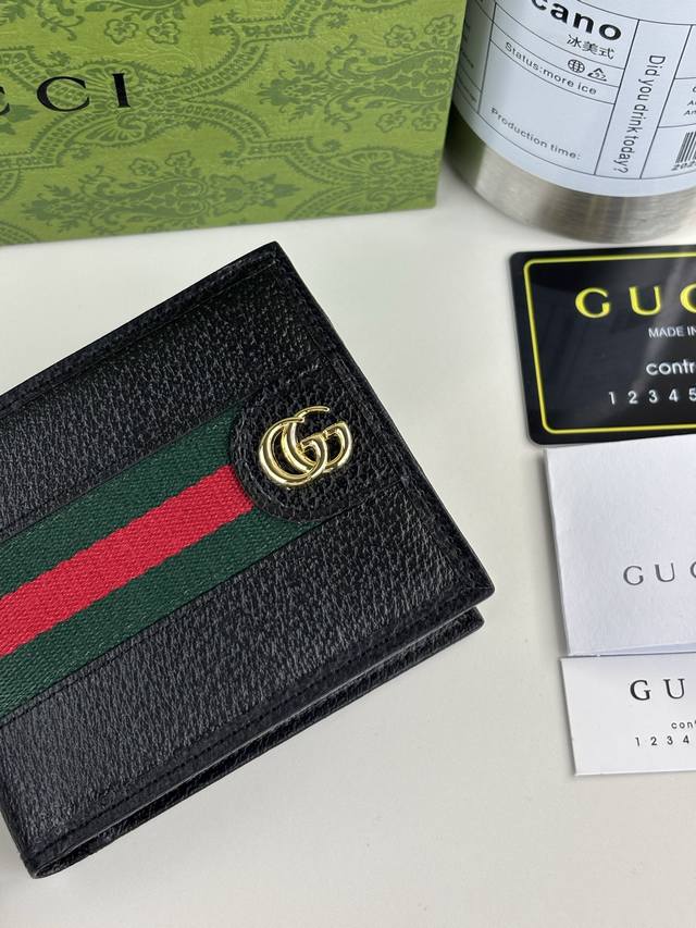 New arrival on the Guccl official website! Ophidia series short wallet, crafted from Gg Supreme pig grain leather with the iconic Double G hardware and classic red and green webbing!