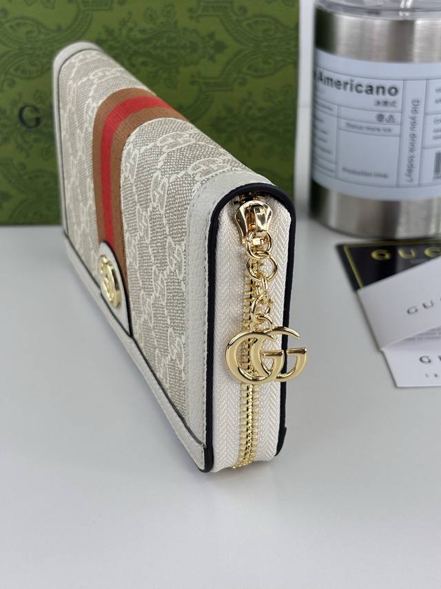 New arrival, synchronized with Guccl official website! Ophidia series ~ Zippered long wallet, made of Gg Supreme premium PVC fabric, with the iconic double G hardware mark, classic brown-red webbing, exquisitely crafted! Style number: 523154 Size: 19cm x 10cm x 3cm Color: Off-white