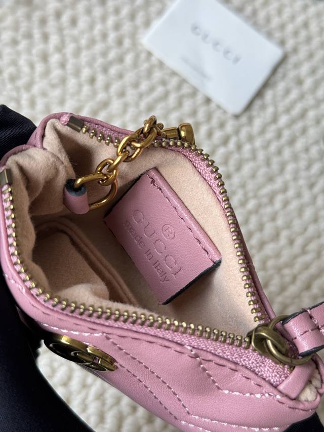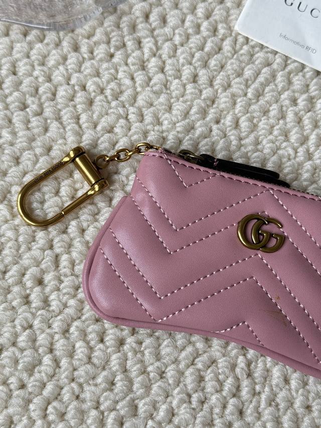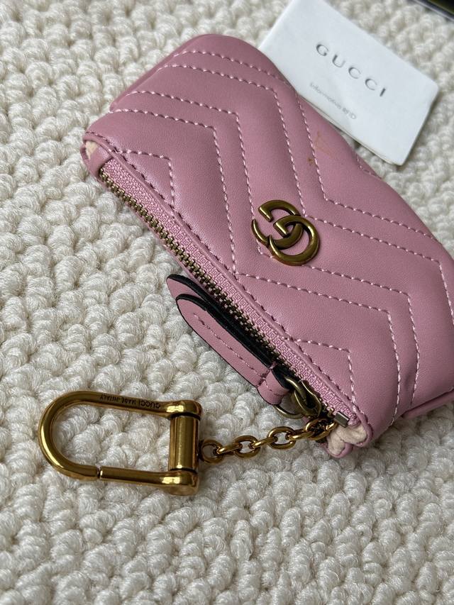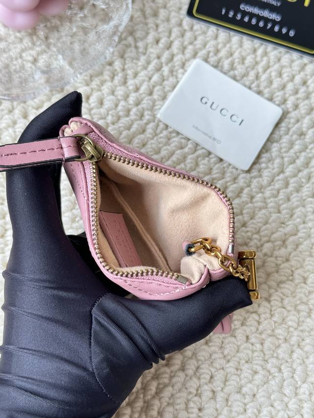 This new Gucci small coin purse is made of calfskin with embroidered wave pattern, paired with exquisite original factory bronze double G hardware and a flexible and chic hook. Small and exquisite, yet highly functional. Model: 671773 Dimensions: 12.5 x 7 x 1.5 cm