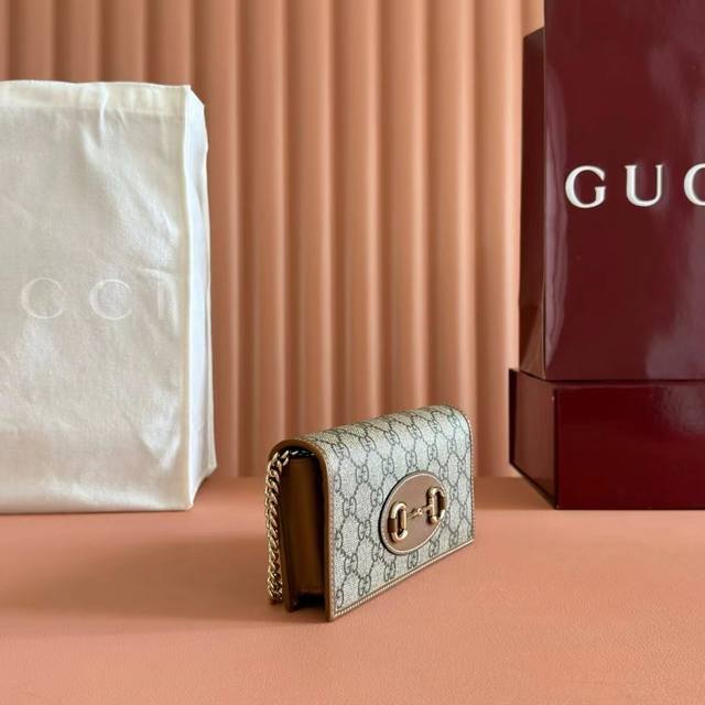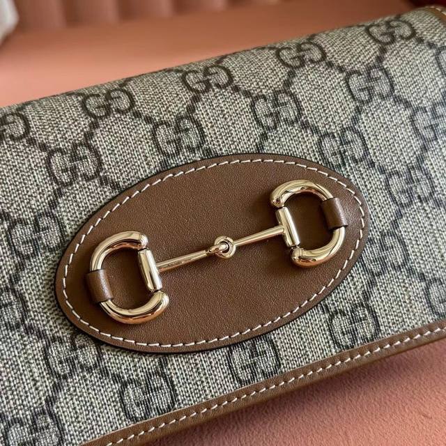 Top-of-the-line Gucci Horsebit 1955 series. This Gucci Horsebit 1955 series handbag is made of beige PVC fabric and paired with unique rice-rubber leather piping, giving the classic design a new charm. This handbag inherits the lines and shape of the single product from more than 60 years ago, cleverly combining classic details with a modern spirit, highlighting the charm of the brand's iconic element, the Horsebit. This small flap shoulder bag comes with an adjustable shoulder strap, which can be freely converted between shoulder and crossbody.