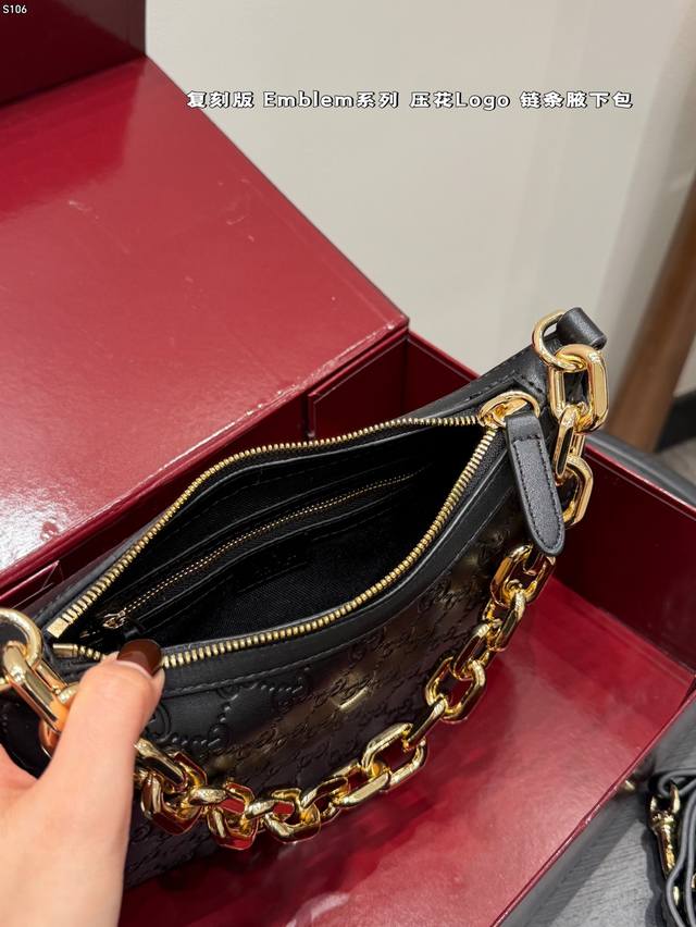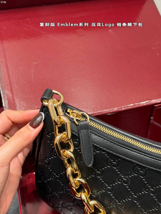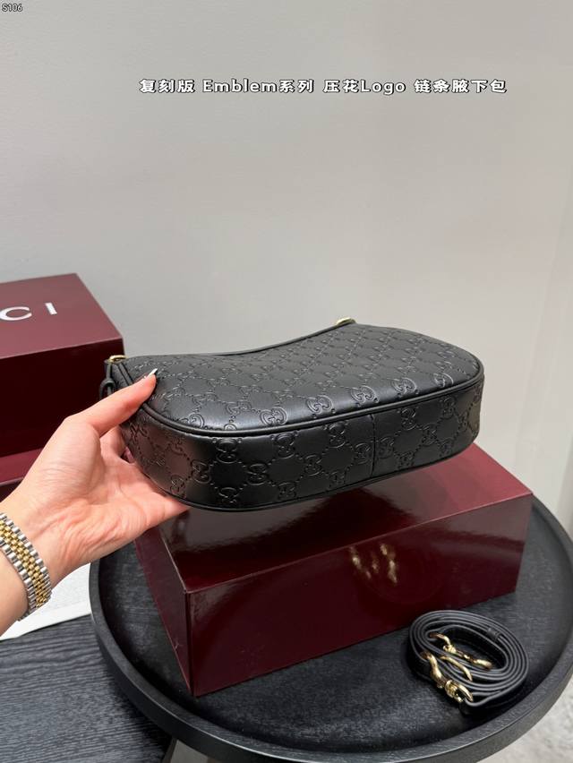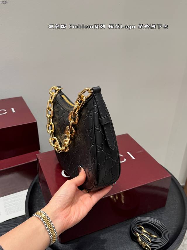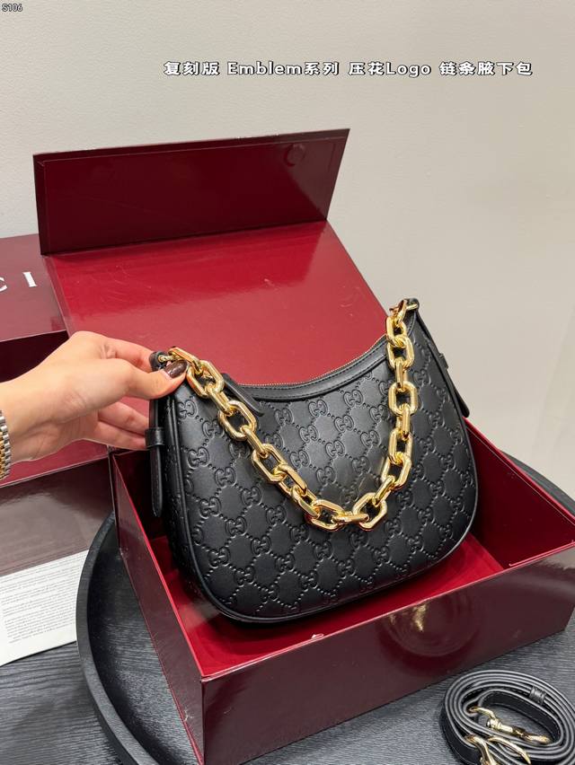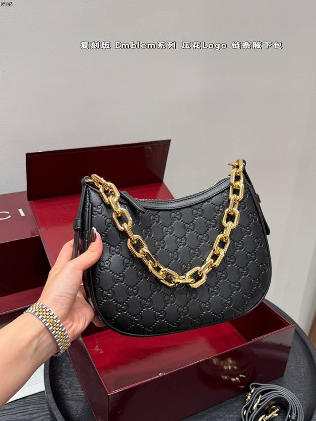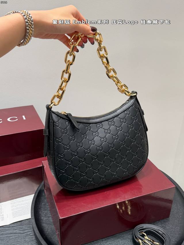Full Gift Set DDD Replica Embossed DDD Gucci New Emmblem Series Chain Shoulder Bag Hobo Crescent Bag DDD Who knows?! Gucci's new women's bags are a direct hit, completely destroying the classic GG embossed pattern! DDD High-end feel, large tote bag with super capacity, perfect for commuting and shopping; chain mini bag is exquisite and fashionable, instantly transforming you into a socialite for evening parties and dates; shoulder bag has a retro vibe, casually slung over your shoulder, a true fashion icon DDD Size: 24*16Cm DDD