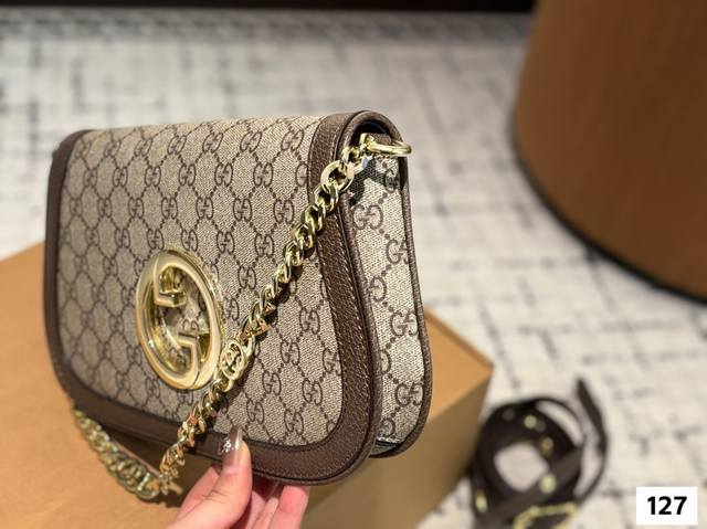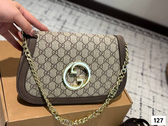 Gucci's Absolute Hit Blondie Metal Hollow Logo With Flap Bag Design Classic And Retro Can Not Miss The Size 23Cm Large