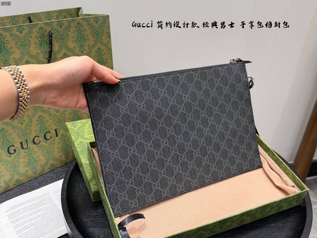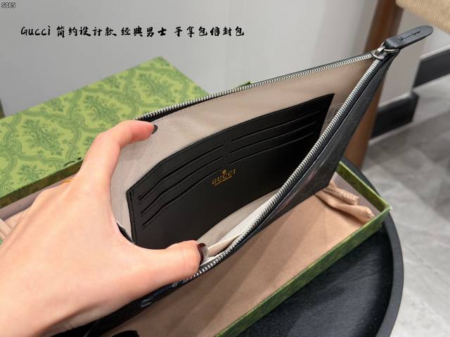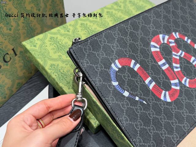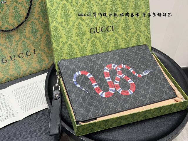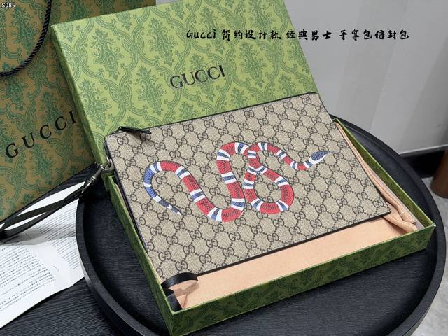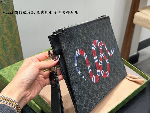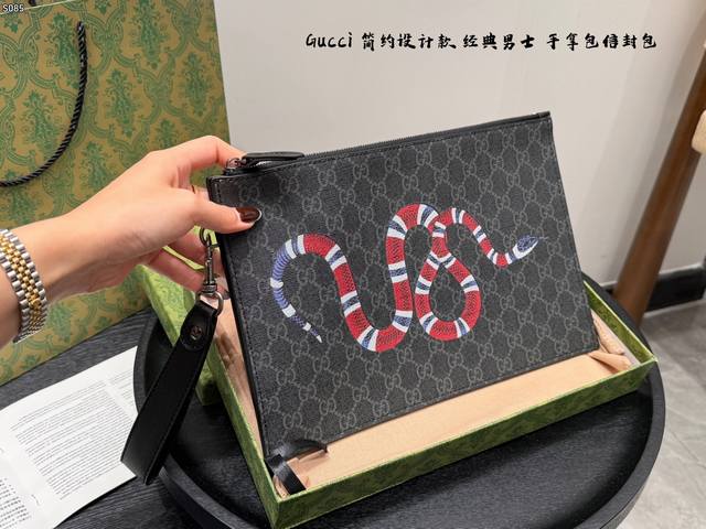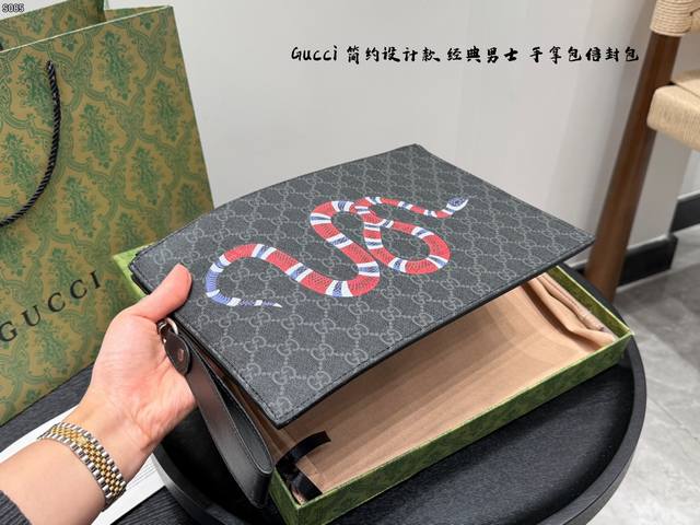 Gift Box Packaging DDD Gucci Coral Snake Print Men's Clutch/Envelope Bag, made of black cowhide leather with a heat-pressed textured finish, understated yet luxurious. The front features a distinctive gold bee metal hardware, symbolizing diligence and preciousness. The interior includes card slots and compartments for easy storage of your phone and wallet. The secure zipper design makes it convenient to carry by hand or wrist, suitable for both business and casual occasions, practical and stylish. DDD Dimensions: 30.5 x 21 x 1.5 cm DDD