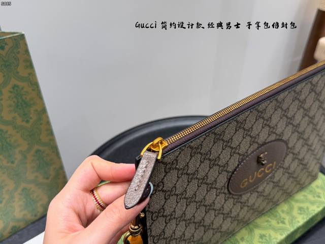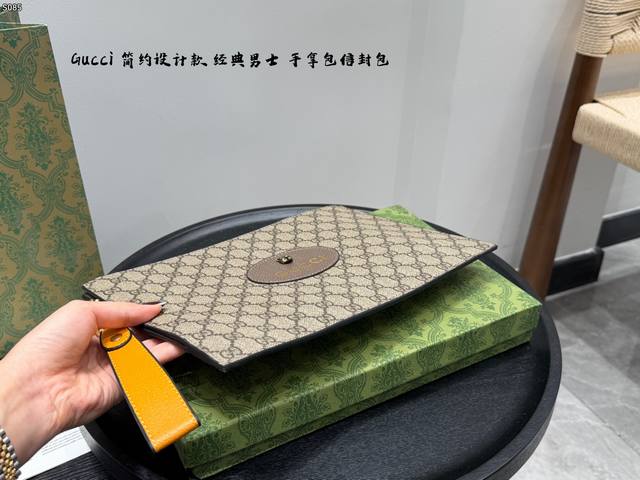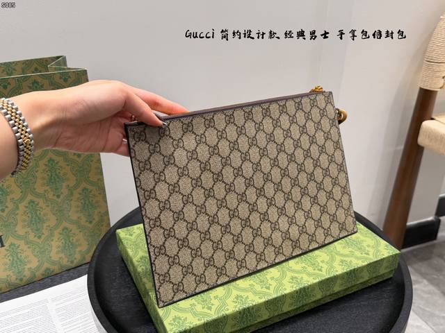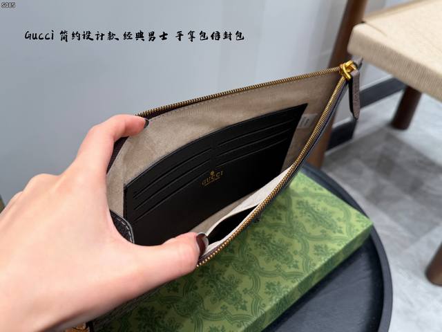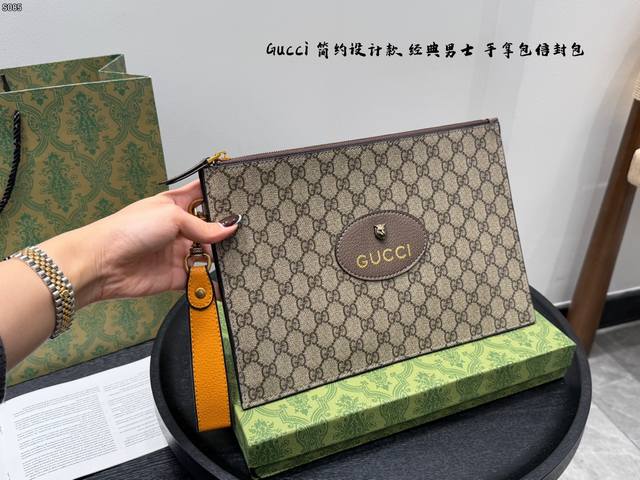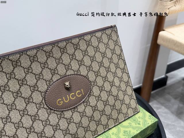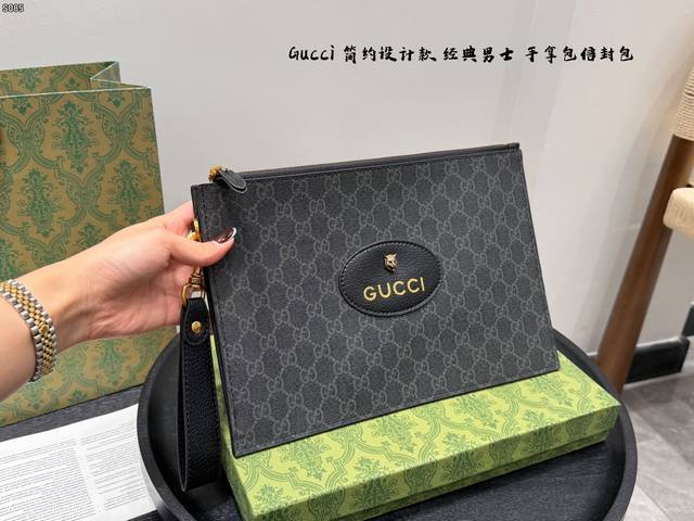 Gift Box Packaging DDD Gucci Tiger Head Men's Clutch/Envelope Bag, made of black cowhide leather with a heat-pressed textured finish, understated yet luxurious. The front features a distinctive gold bee metal hardware, symbolizing diligence and preciousness. The interior includes card slots and compartments for easy storage of your phone and wallet. The secure zipper design makes it convenient to carry by hand or wrist, suitable for both business and casual occasions, practical and stylish. DDD Dimensions: 30.5 x 21 x 1.5 cm DDD