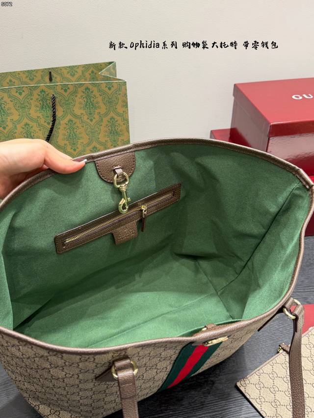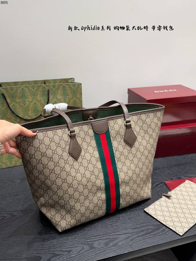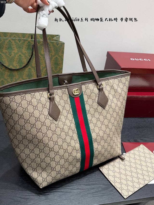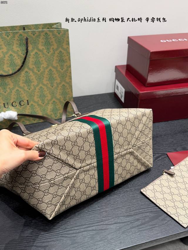Gift Box Packaging with Coin Purse. Gucci Classic Red and Green Ribbon Tote Bag. Gucci has discovered a tote bag that you can just stuff in and go! It's perfect for carefree and easygoing girls. Size: 32*28cm.