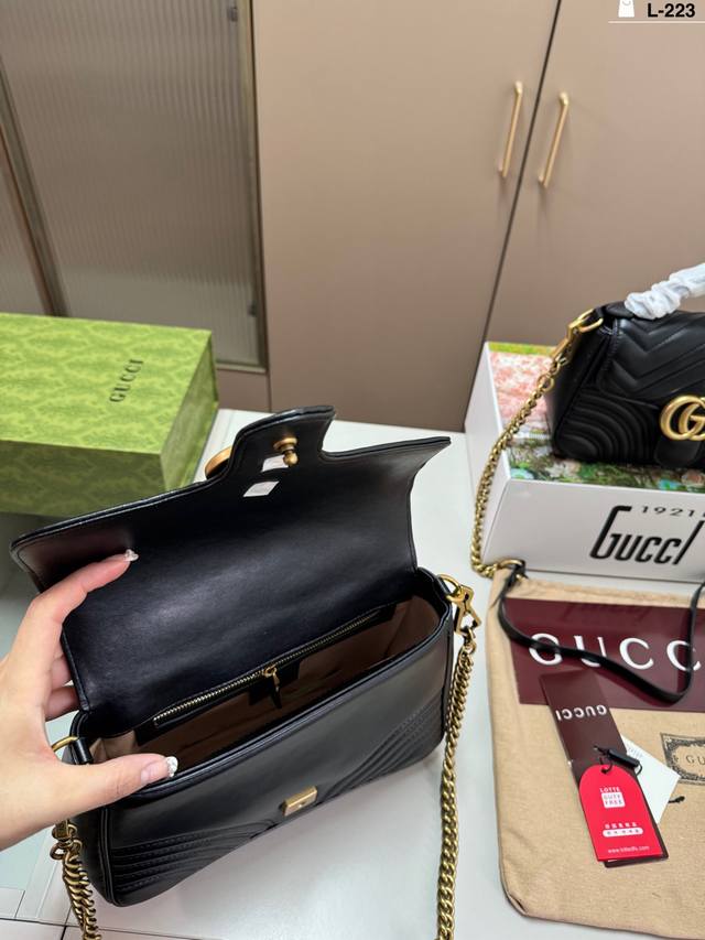 with gift box. Cool Gucci Marmont chain bag Simple and elegant without losing t