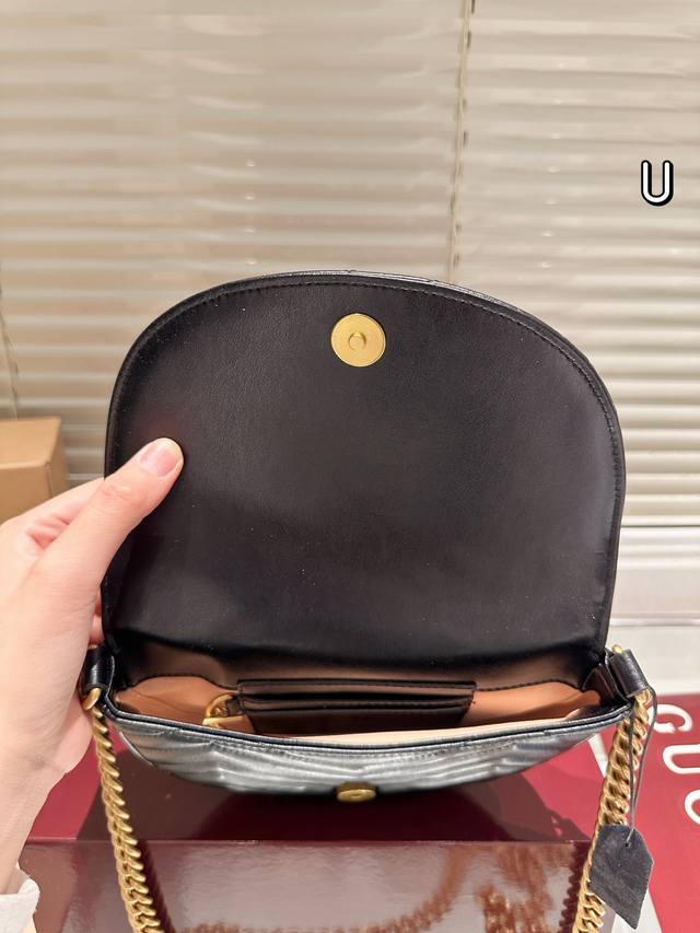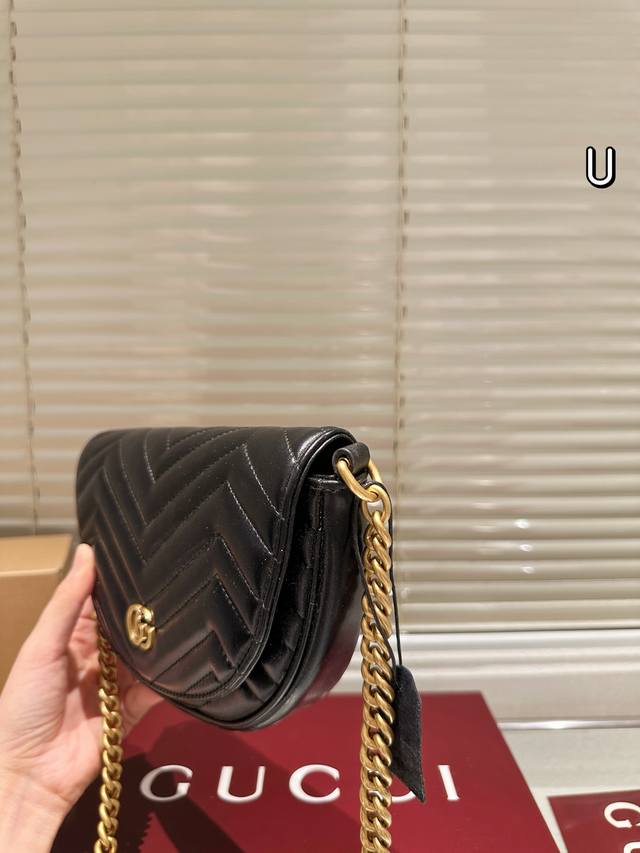 This Gucci horseshoe bag is incredibly hard to find and so beautiful; you'll fall in love at first sight. This particular bag is from the classic Gucci Ophidia series, featuring retro red and green stripes that create a harmonious overall look. It exudes elegance when carried. I heard Jolin Tsai also uses this bag; it looks so much better on her than on display. Check out my photos of me wearing it