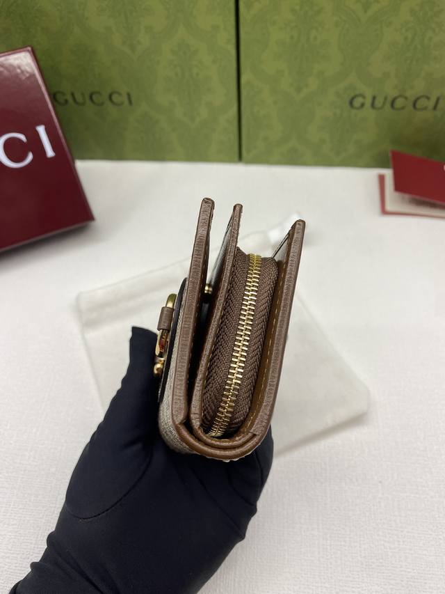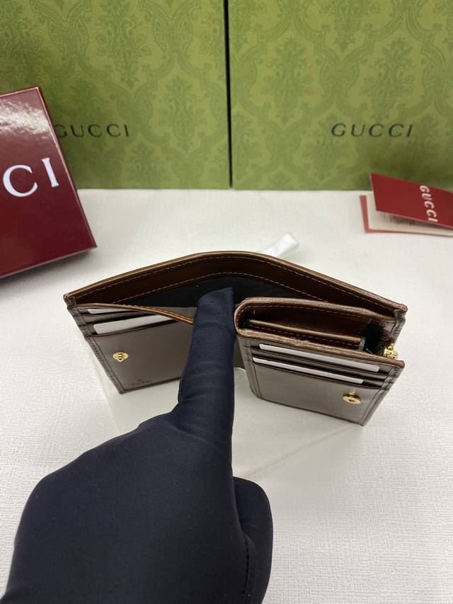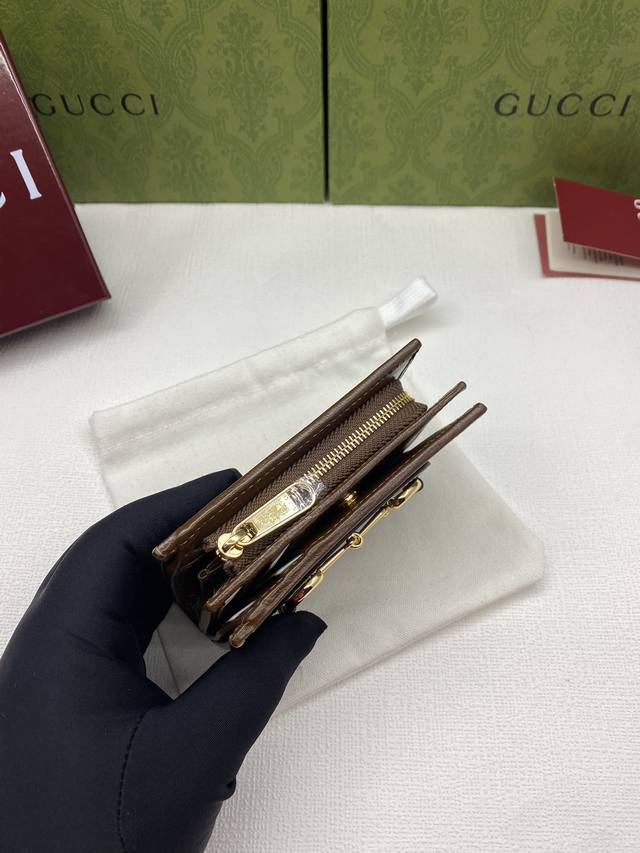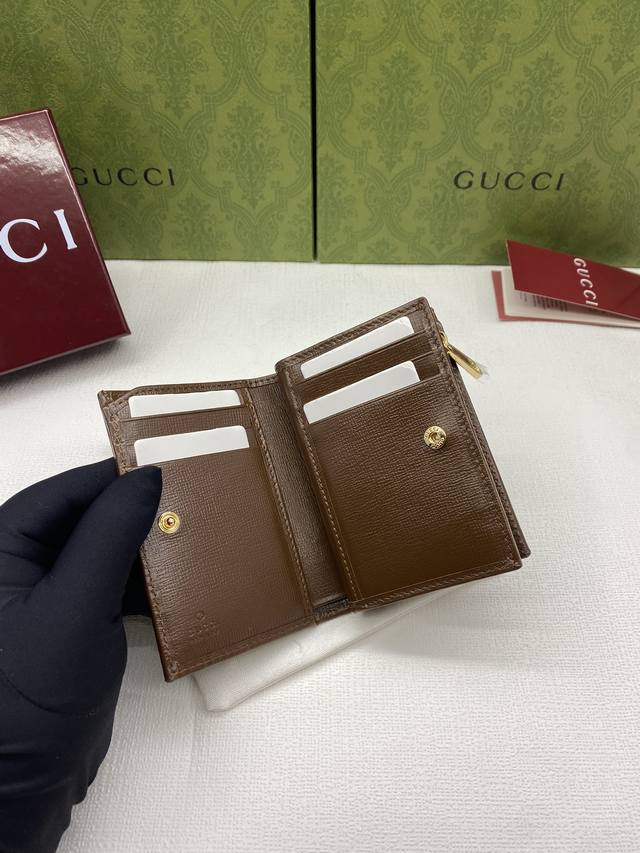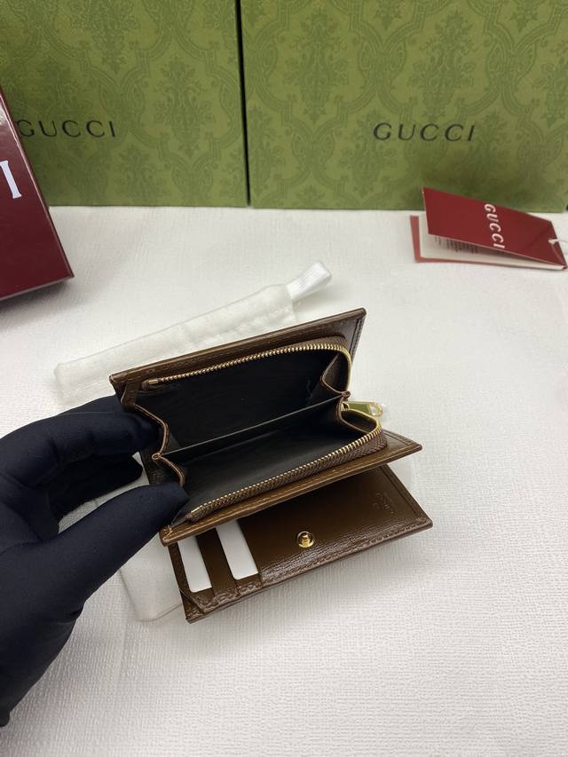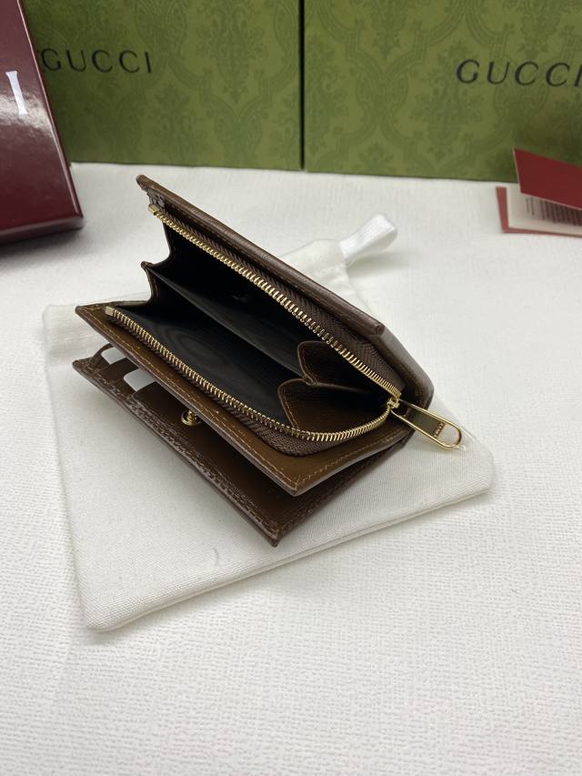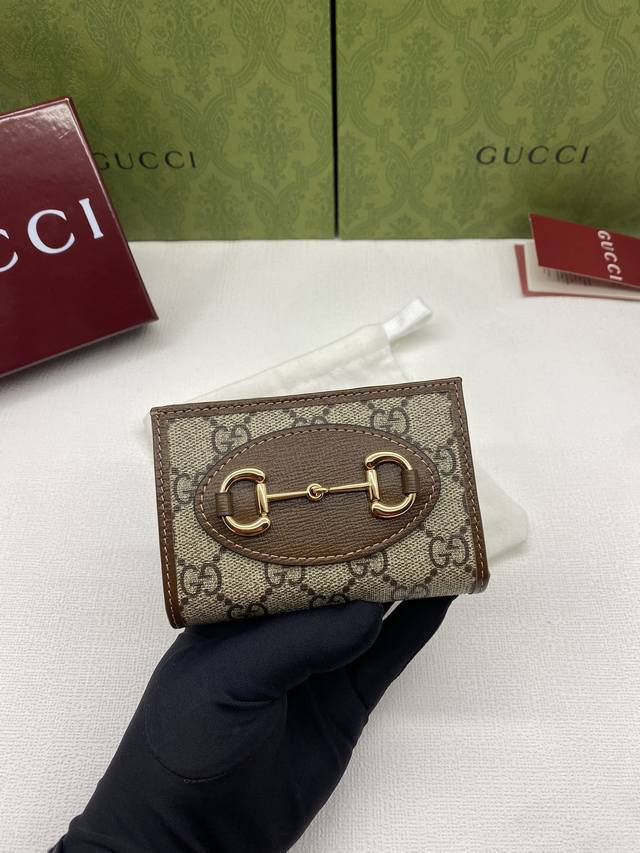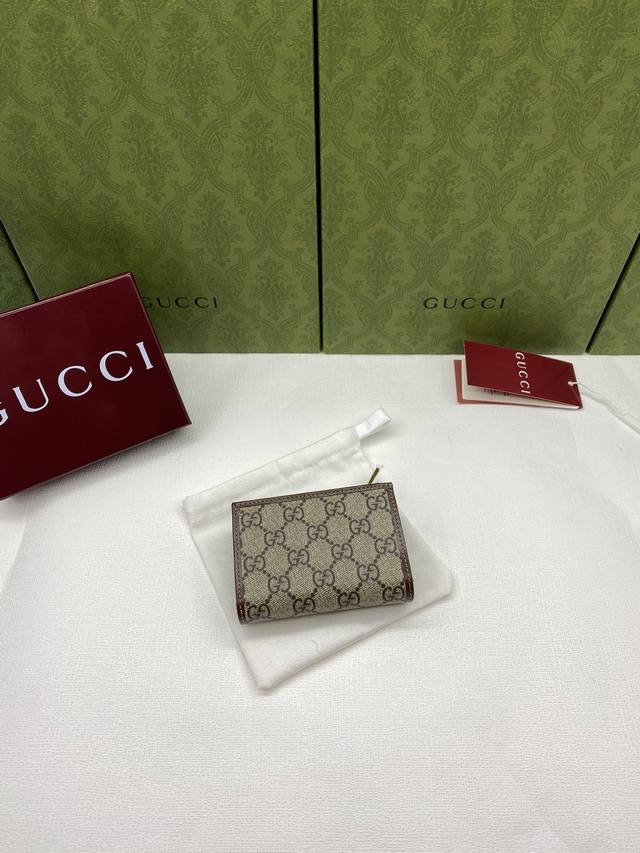 Comes with red box packaging. Style 726846 92Tcg 8563. Directly extracted from the archives and featuring contemporary models, Morsetto's roots lie in the brand's origins in the sports and leisure sector. Gold hardware connects different chapters of Gucci's history, linking the past and present, and looking towards the future. Here, he adorns a wallet with Gg Supreme. Fabric Gg Supreme beige and brown leather finish with gold trim interior: 6 card slots, 1 banknote slot, and 1 handbag pocket with automatic push-button lock. L 11.5 Cm X A 8 Cm X P20