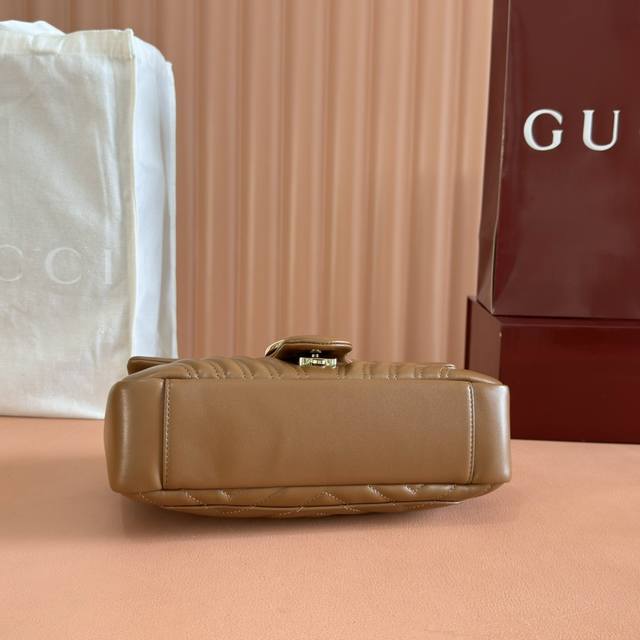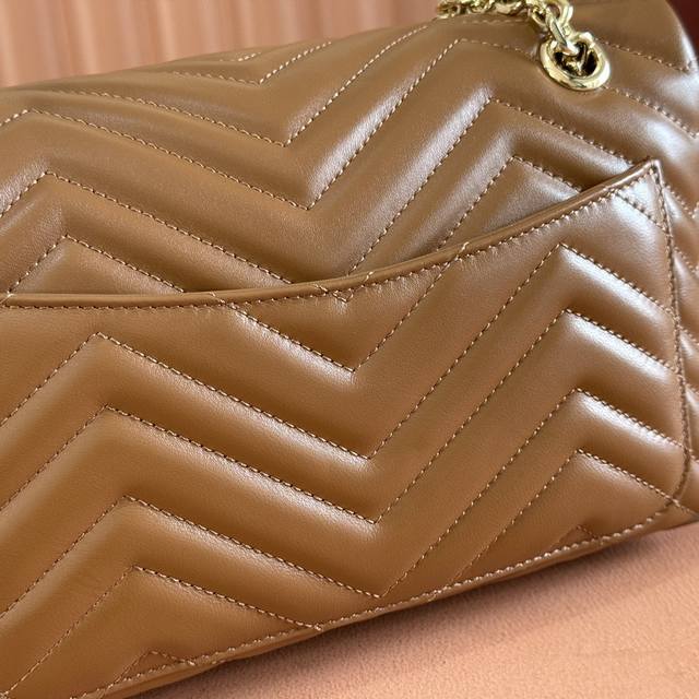Features full boutique packaging, imported original sheepskin, pure copper hardware, and the iconic GG Marmont series. The bag incorporates the signature double G design and faceted chain strap, crafted from supple leather with a soft, flowing silhouette. A clean, minimalist back pocket enhances the practicality of the medium and large sizes. Features include: Black V-shaped Matelass