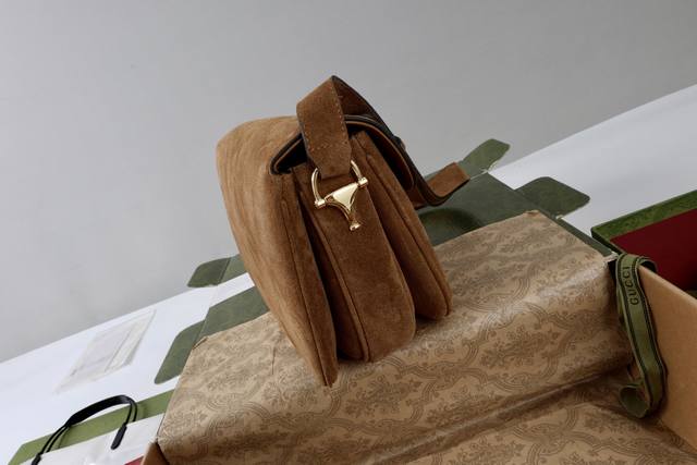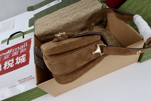 Genuine Leather Suede DDD Description: From the 2025 Fall/Winter collection, this shoulder bag recreates the brand's equestrian style, blending light gold details with smooth soft leather. It features double rings and a long strap, adding to the Gucci Horsebit 1955 collection. DDD Model 847063 DDD Made with high-quality imported cowhide with a genuine suede finish, the meticulously polished brass hardware boasts clearly visible grain and a delicate, top-quality feel! DDD Dimensions: 26 x 17.5 x 10 cm DDD