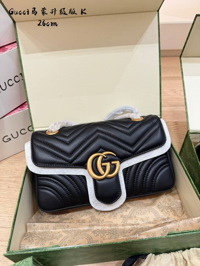 Classic gold buckle double Glogo vintage distressed hardware wavy seam cowhide leather is not only shiny and durable. It can be worn on one shoulder for elegance and maturity, or crossbody for casual style. One bag is worth a hundred.