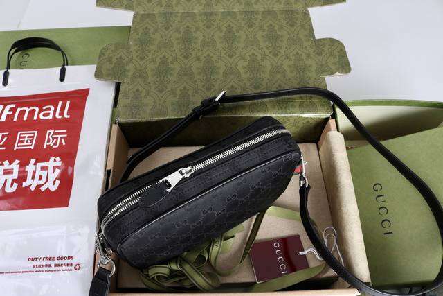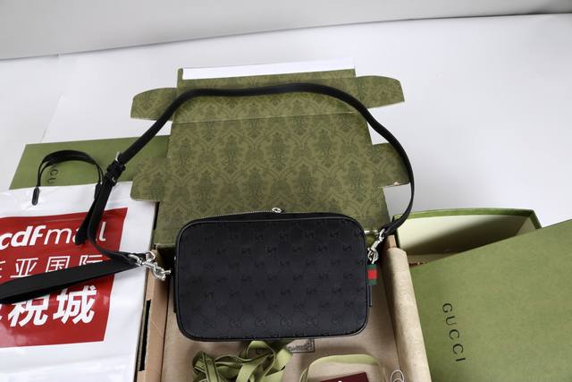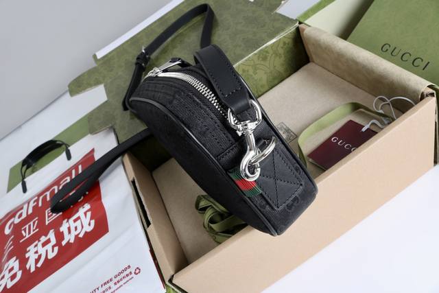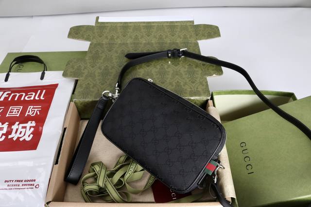 Material: Beige and dark brown Gg canvas, dark brown leather piping, red and green webbing details, nylon lining.